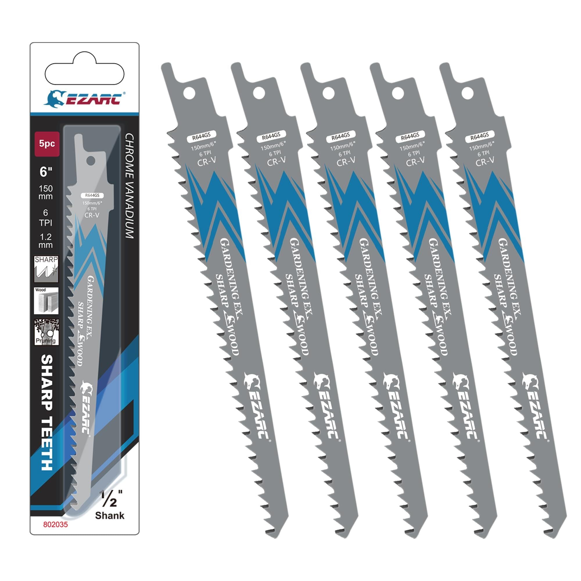 EZARC レシプロソー替え刃 枝切り用 150mm 6山 電気のこぎり替え刃 木工用 セーバーソーブレードセット 生木 庭園剪定 木材切断 樹木剪定 プラスチックパイプ切断 5本組