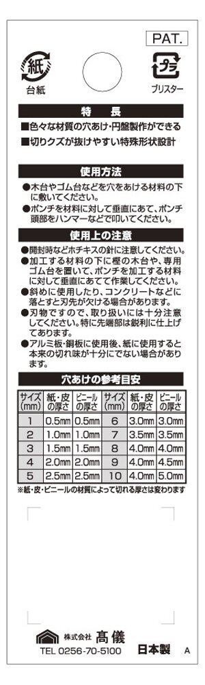 高儀(Takagi) 儀助 穴あけポンチ 8mm