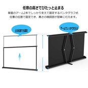 【高さ・傾き微調節可能】裏面の上ストッパーでポールを調節でき、下ストッパーでスクリーンの位置を調節でき、利便性が高いです。吊り下げバーは、たわみ強度のあるアルミ合金を採用し、温度差による経常変形が少なく、スクリーンの平面性を保ちます
