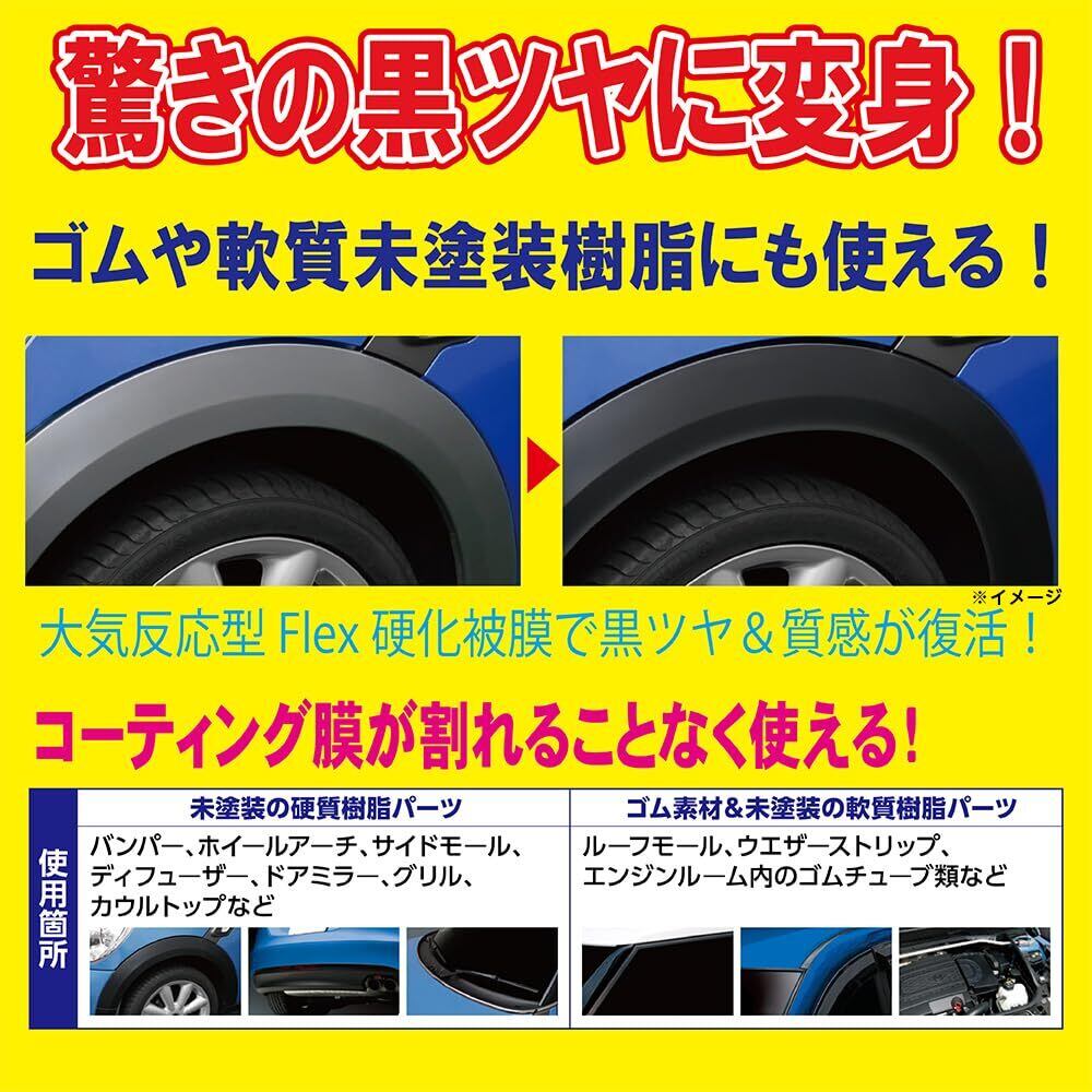 ●大気反応型Flex硬化被膜で黒ツヤ&質感が復活。効果は約6ヶ月(メーカーテストによる)。