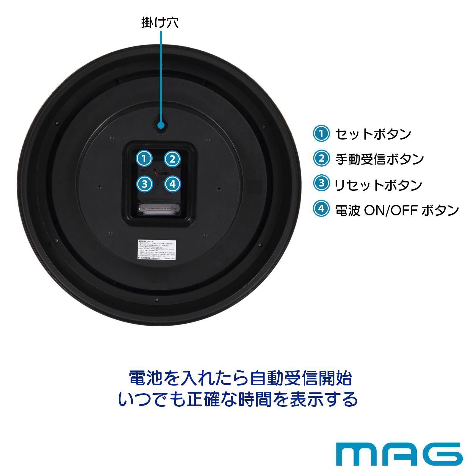 MAG(マグ) 掛け時計 壁掛け時計 電波時計 アナログ 静音 連続秒針 クラシック レトロ モダン 和室 木目調 インテリア 直径35.5㎝ 電波受信ON/OFF ブラウン 大正館 W-778 BR-Z ノア精密