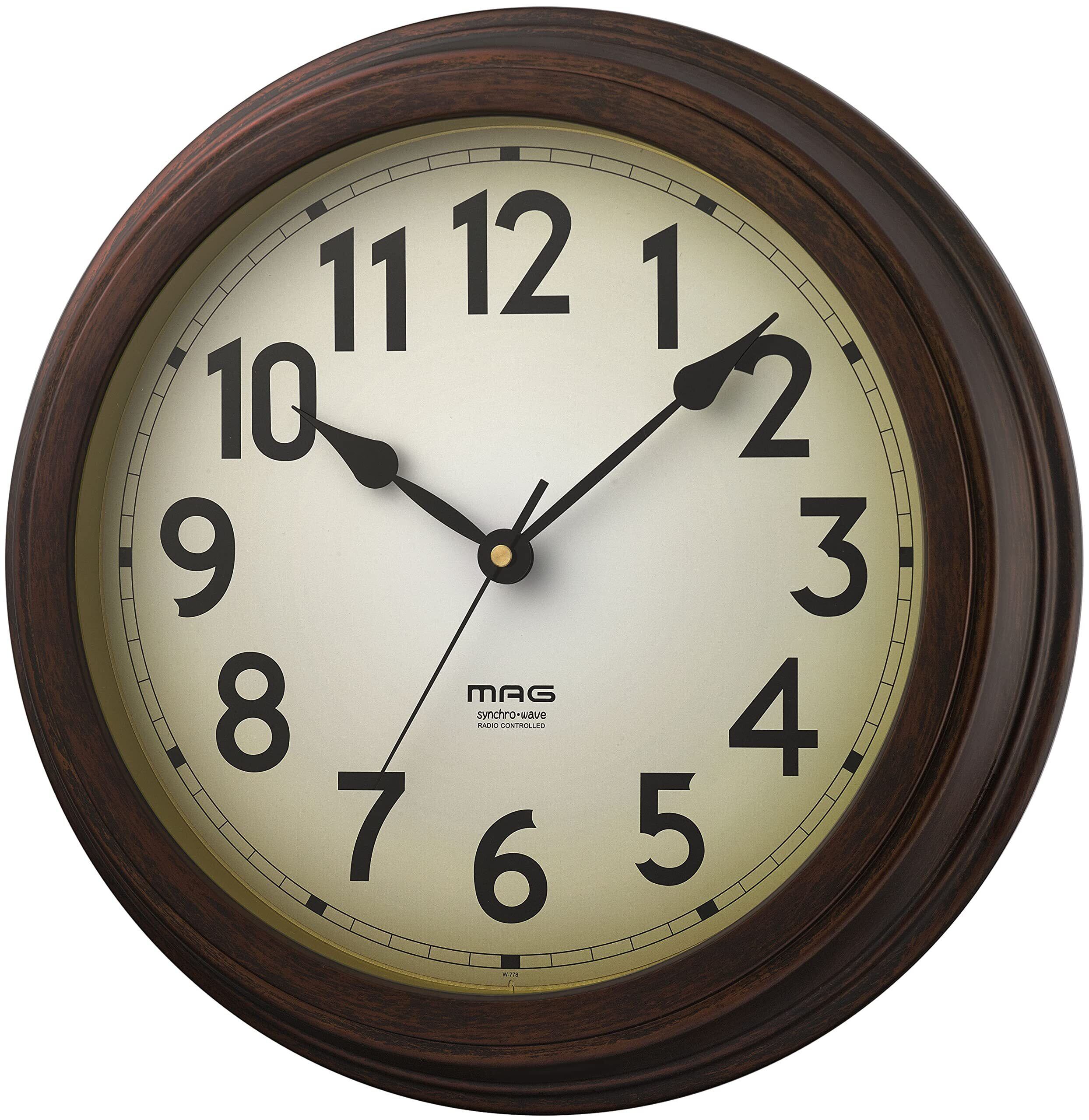 MAG(マグ) 掛け時計 壁掛け時計 電波時計 アナログ 静音 連続秒針 クラシック レトロ モダン 和室 木目調 インテリア 直径35.5㎝ 電波受信ON/OFF ブラウン 大正館 W-778 BR-Z ノア精密 | yankees