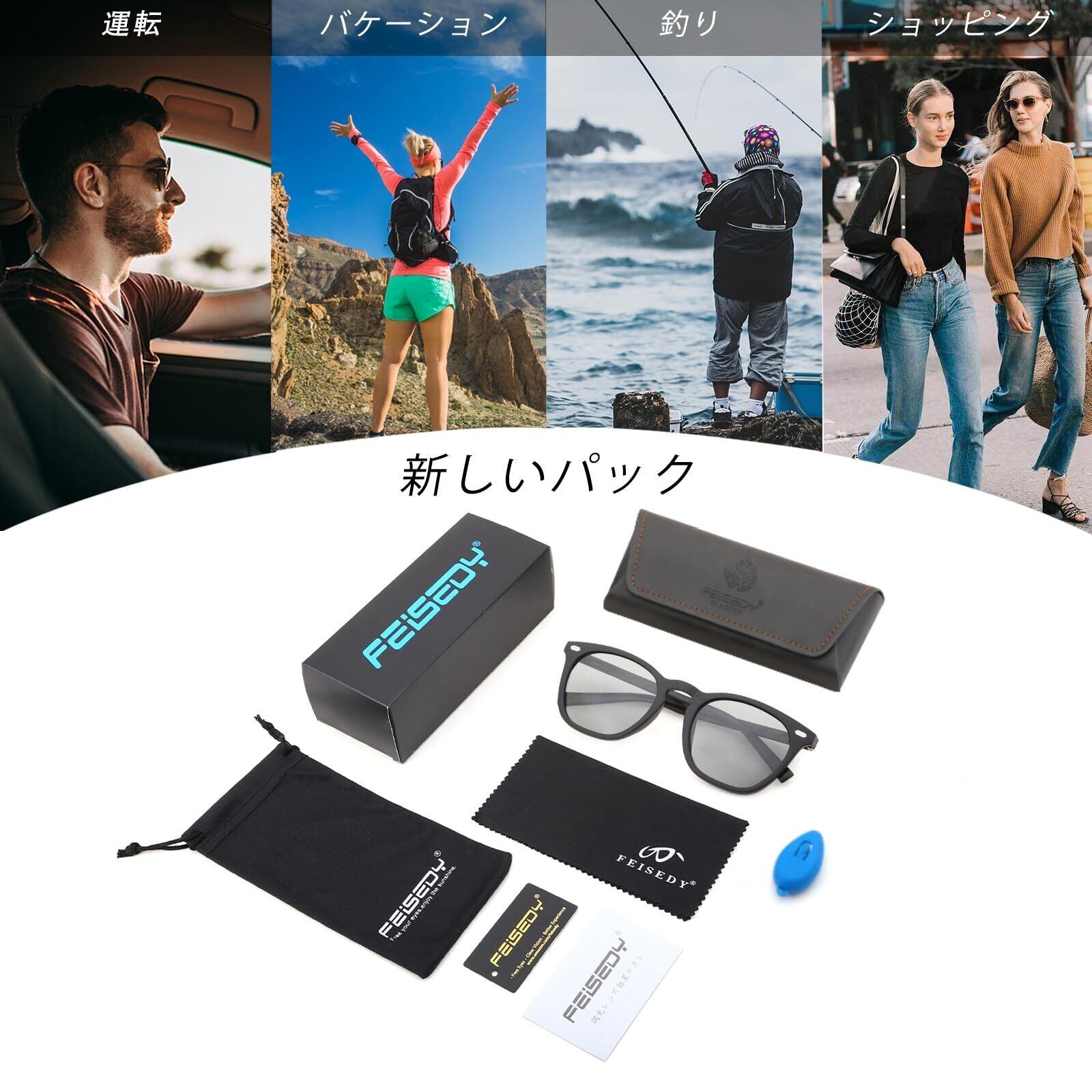 [FEISEDY] サングラス メンズ 運転 偏光サングラス 調光 変色 UV400保護 レディース サングラス自転車/釣り/野球/ランニング 超軽量カラーレンズ ユニセックス B1062
