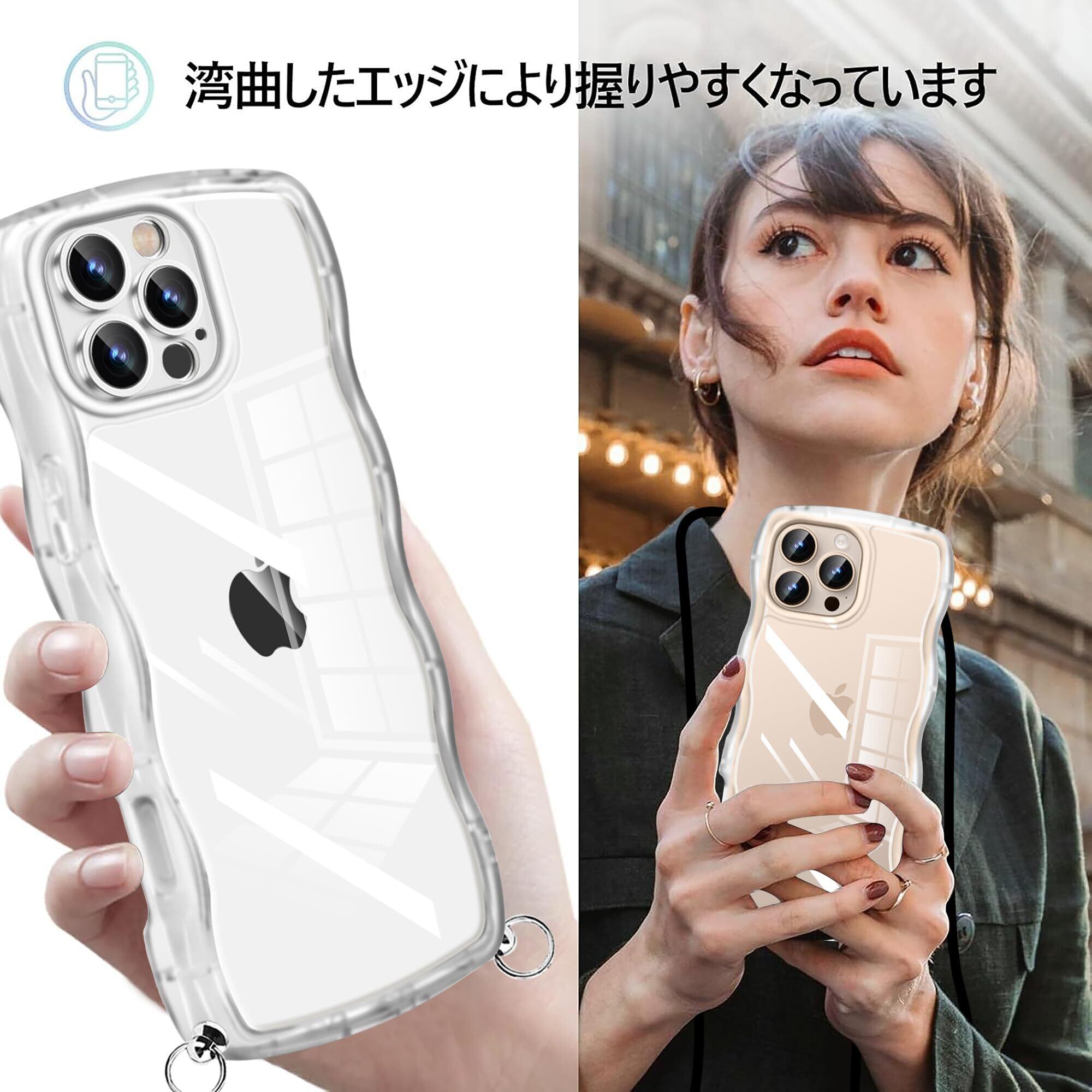 iPhone 16 Pro Max 用 ケース クリア ショルダー 耐衝撃 人気 かわいい アイフォン16 Pro Max 用 カバー 透明 スマホケース 薄型 軽量 首かけ 肩掛け 縄掛けケース ストラップ付き 取り外し可能 長さ調整可能 ワイヤレス充電対応(クリア)