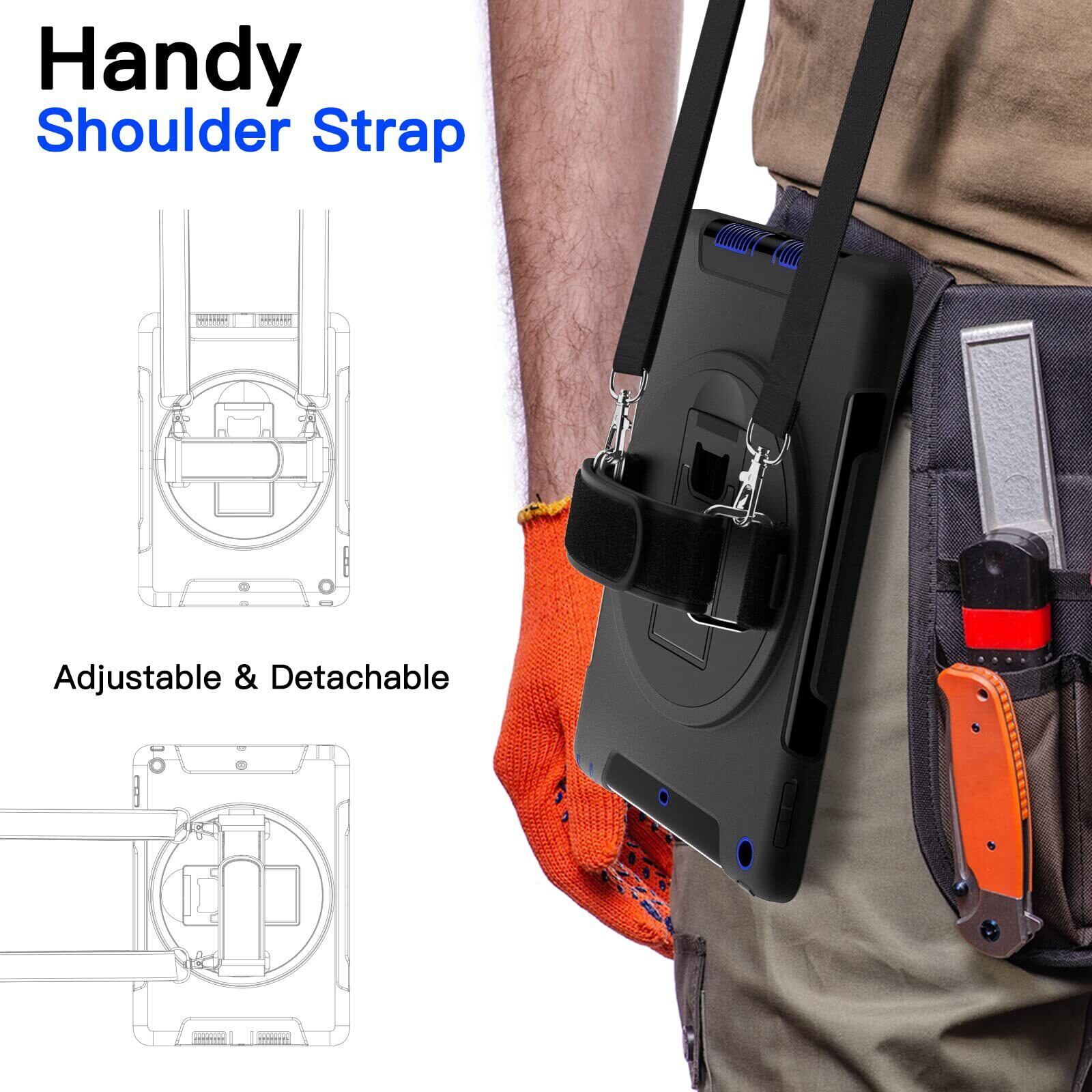 [着脱式 & 調節可能なショルダーストラップ] 自宅、職場、旅行先のどこにでも iPadを便利に持ち運べます。車のシートのヘッドレストの後ろに掛けて、共有して視聴することもできます