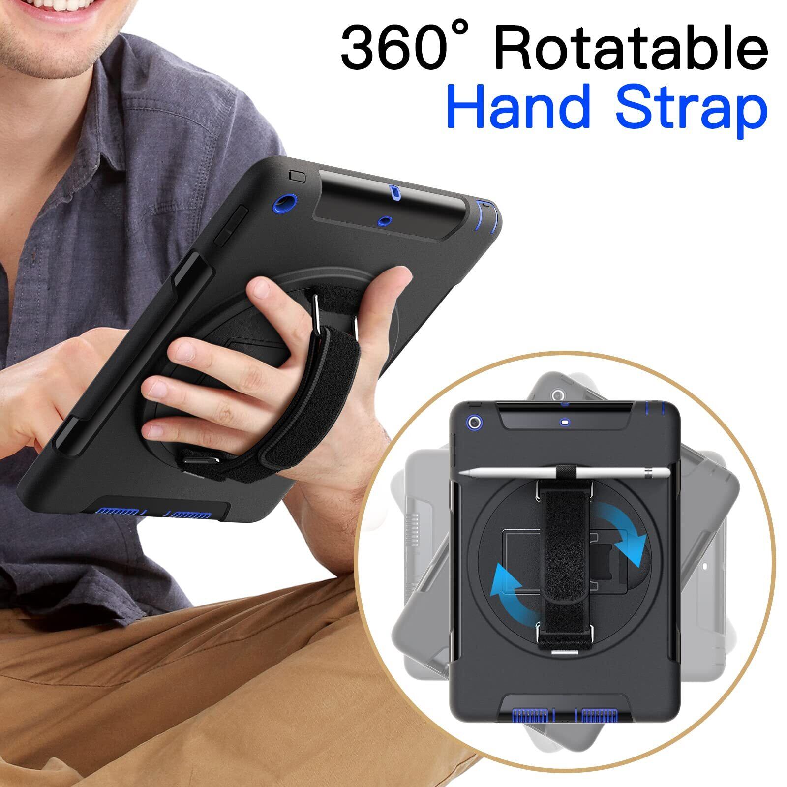 JETech iPad 9.7インチ ケース (第6/5世代、2018/2017モデル) 液晶保護フィルム付き 保護耐衝撃頑丈なタブレットカバー 360°回転ハンドストラップスタンド (紺)