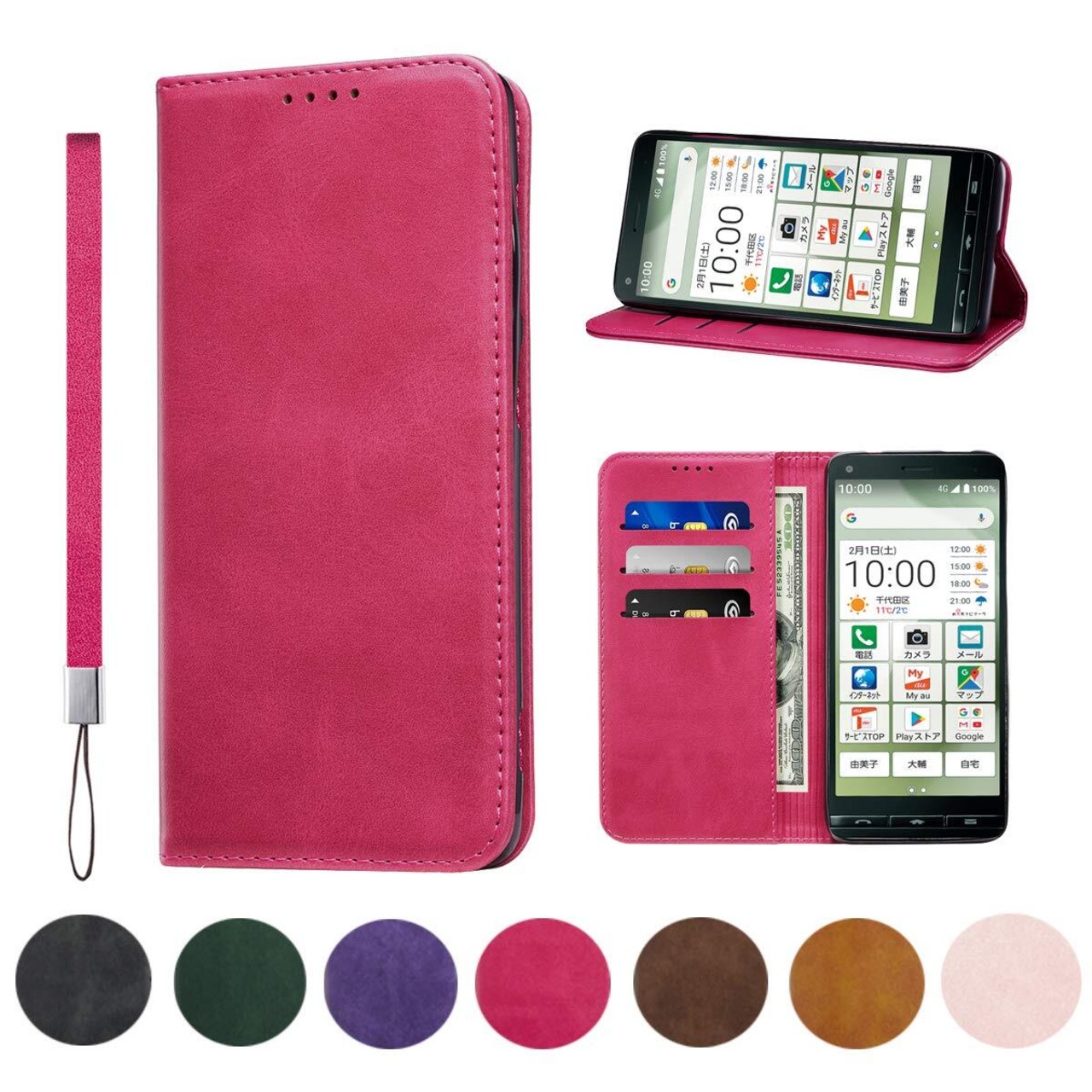 BASIO4 KYV47 ケース 手帳型 高質PUレザー BASIO4 KYV47 カバー KYOCERA BASIO 4 ケース 耐衝撃 内蔵マグネット開閉式 ベルトなし スマホケース おしゃれ カードポケット スタンド機能 便利 スプラット同梱 携帯ケース(ローズレッド) | yankees