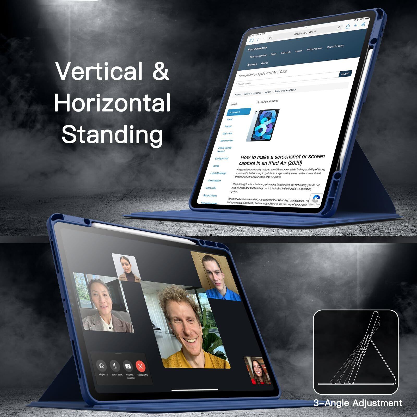 JETech 回転ケース iPad Pro 12.9インチ用 (2022/2021/2020/2018) Pencilホルダー付き 360°回転保護 スタンドカバー クリアバック 自動ウェイク/スリープ (紺)