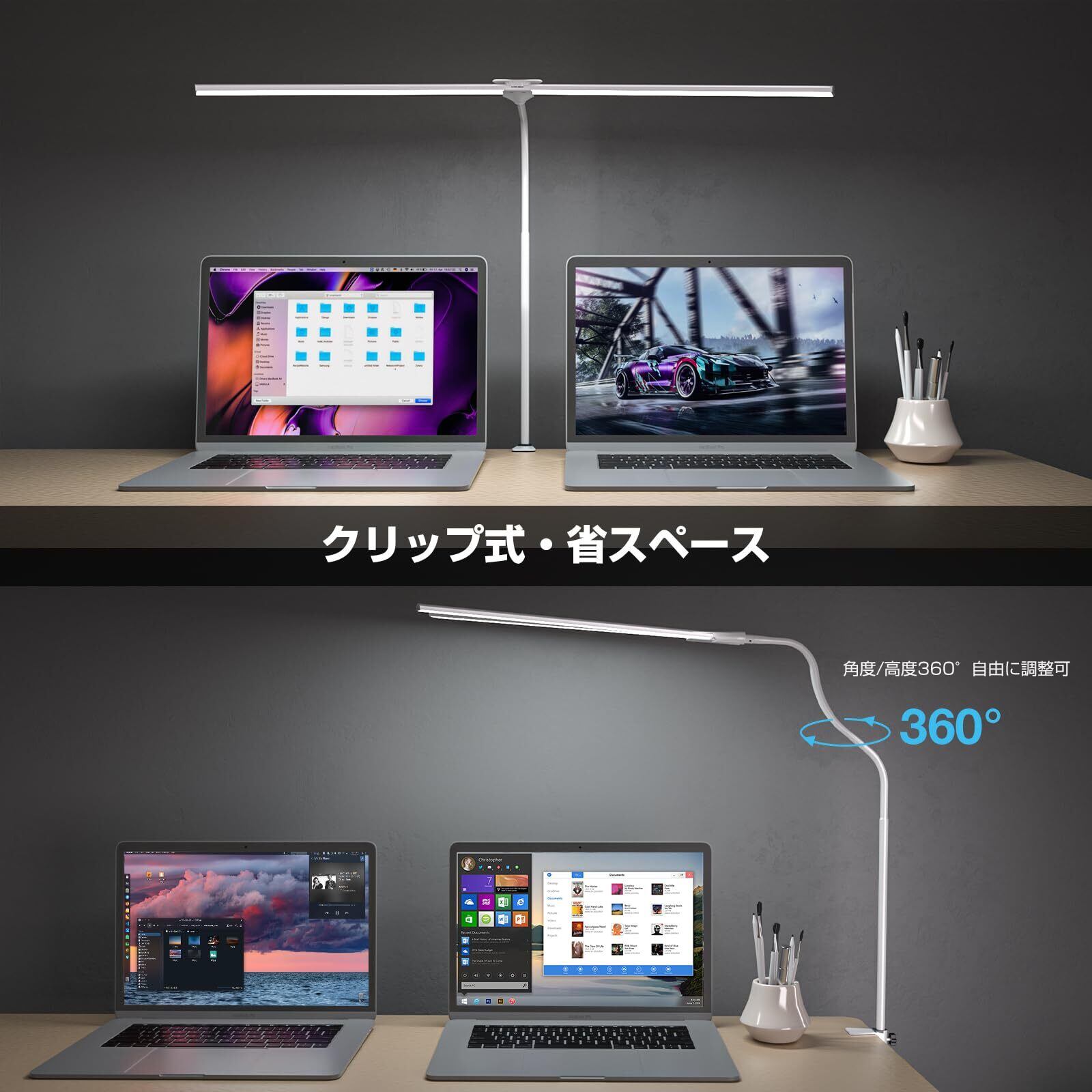 Wobane デスクライト LED 1800lm 目に優しい 電気スタンド【80cm幅・ダブル光源・5段階調色・無段階調光・Ra95高演色性】明るい デスクスタンド おしゃれ 卓上ライト クランプ式 省エネ 角度調節可能 テーブルライト 独立ボタン 簡単操作 PC作業・仕事・寝室・勉強・読書 間接照明 ledライト PSE認証済 ACアダプター付き | yankees