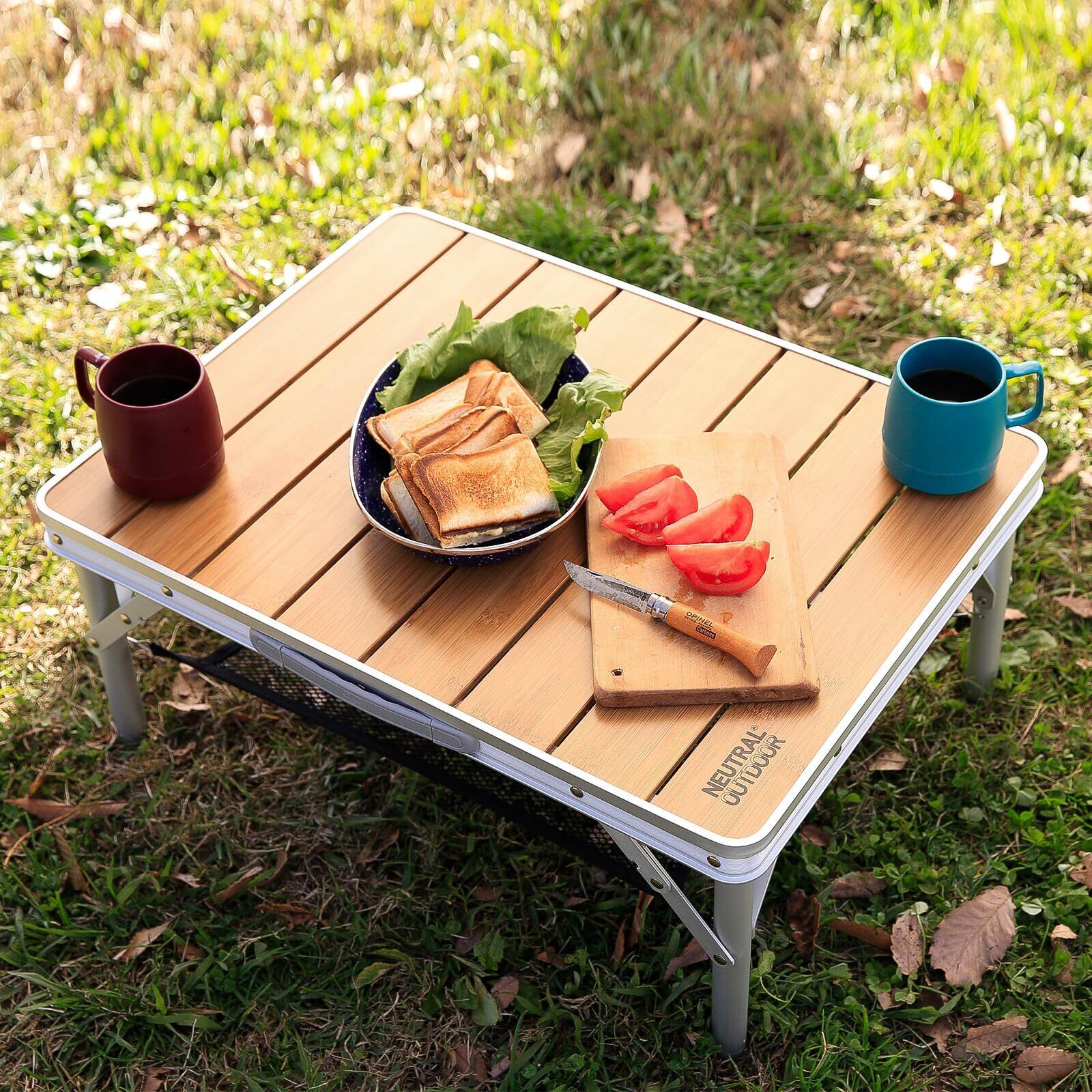 NEUTRAL OUTDOOR バンブー テーブルキャンプ 折り畳み メッシュ アウトドア 高さ二段階調整可 バンブーテーブル 天然竹 コンパクト M2 組立不要 耐荷重30kg ピクニック レジャー 60×45cm×26cm/58cm NT-BT04