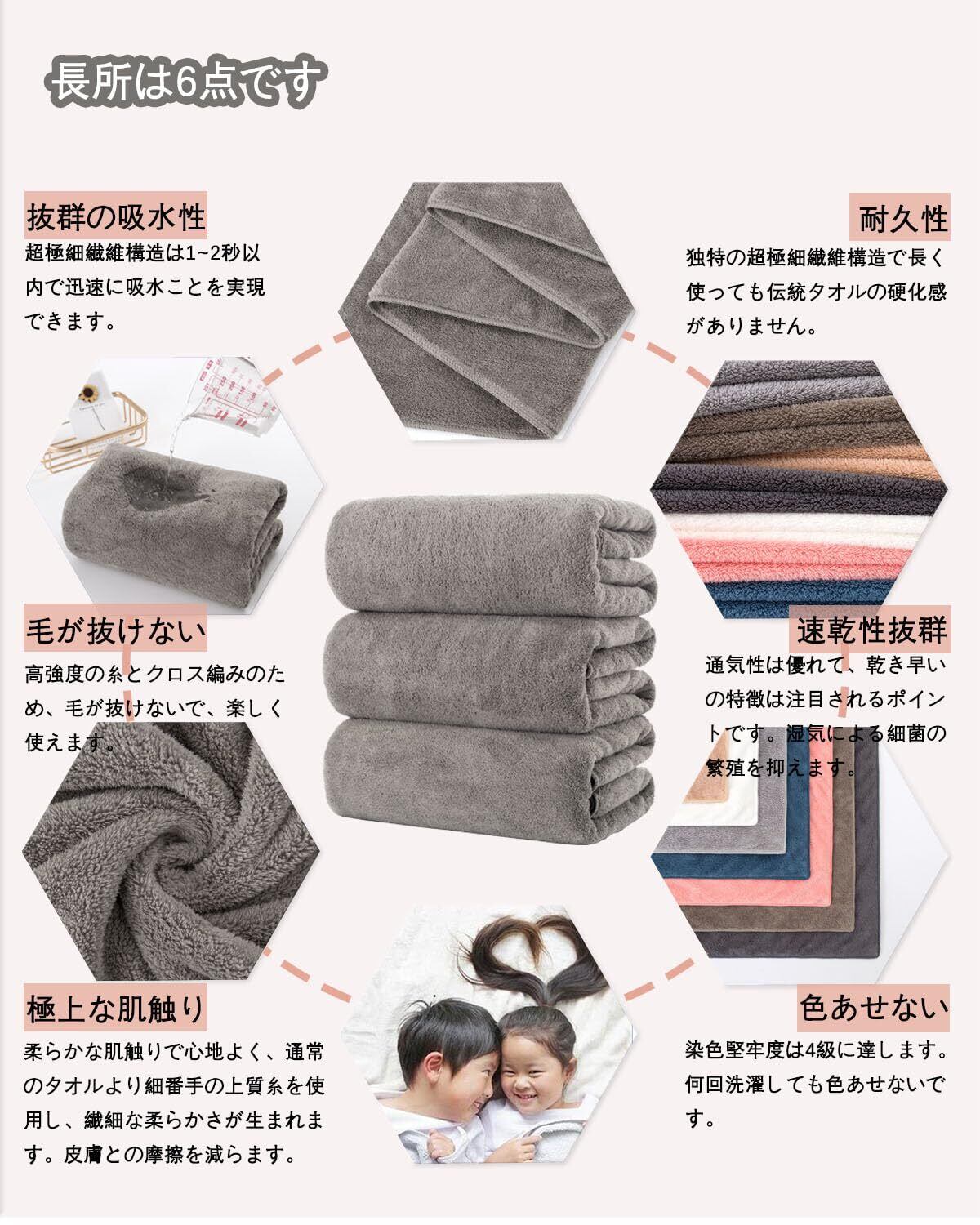 【材質】:ポリエステル85%、ポリアミド15%高級マイクロファイバー素材を採用 - このタオルは毛髪の1/100超微細繊維(マイクロファイバー)で作られたバスタオルです、触り心地最高、優しくてやわ らかい肌触りです、やさし い仕上げに蛍光染料は使用 しておりません。品質:このバスタオルが色褪せない、毛羽落ちしないことを保証します。