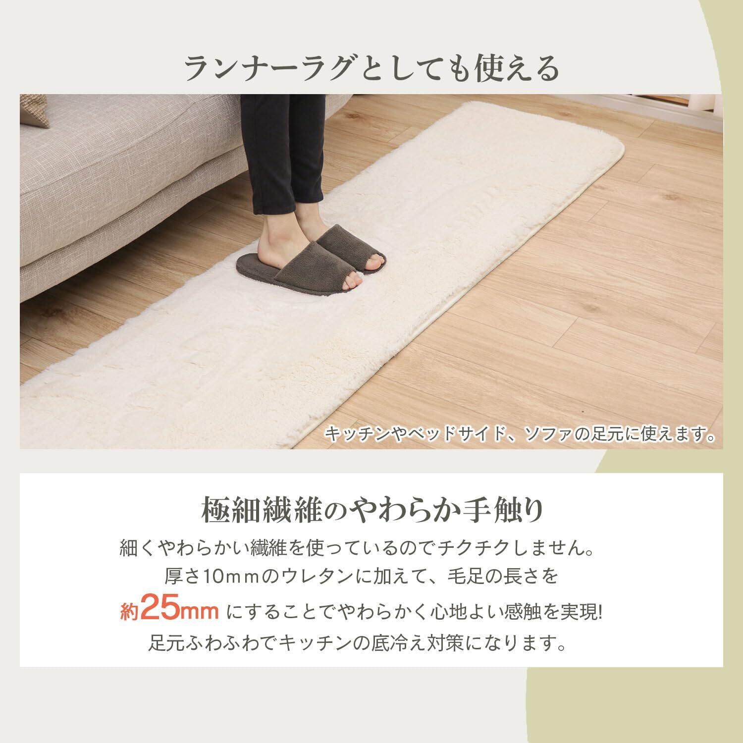 ・【商品の特徴】ふわふわシャギー、オシャレなカラー、ラビットファーのような手触り、お手入れ簡単、毛が抜けにくい、滑り止め付き、ホットカーペット対応、床暖房対応、オールシーズン、手洗い可能
