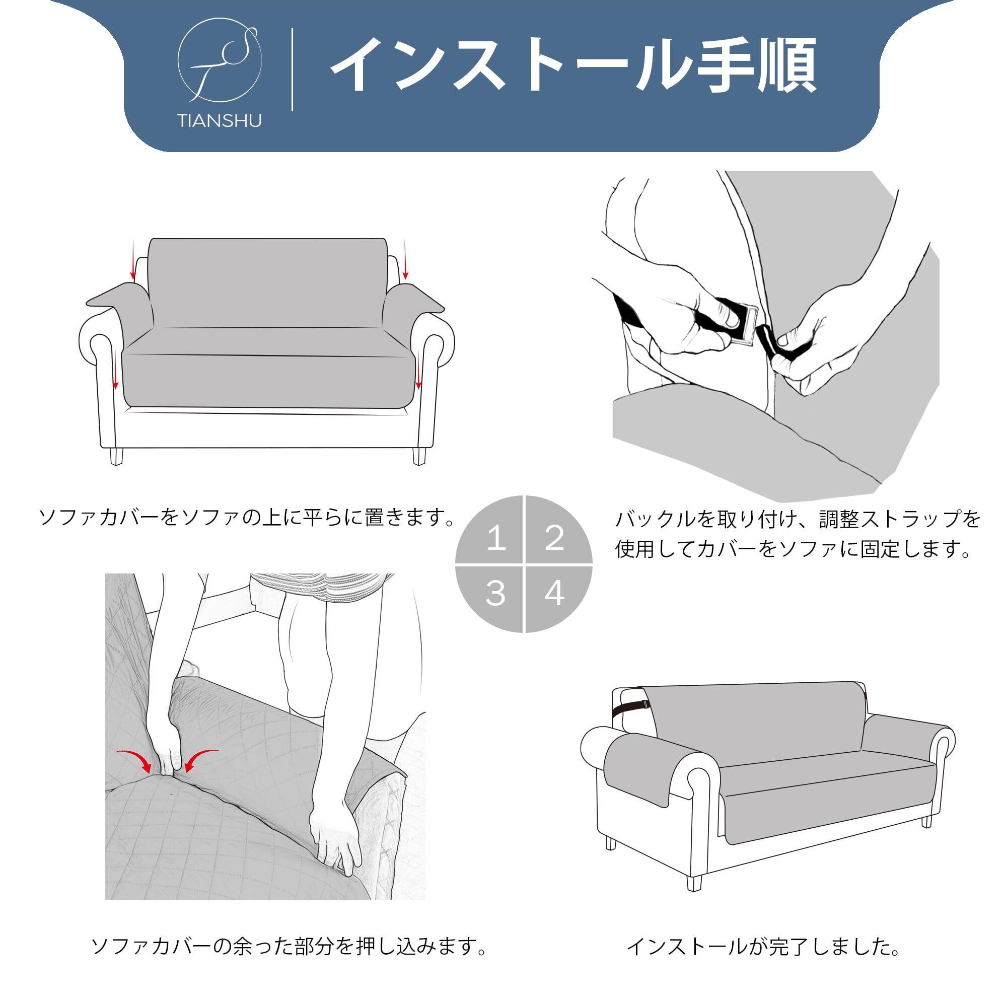 【防水】防水生地を使用しており、ある程度の水の侵入を防ぎます。誤って飲み物をこぼしたり、ペットがカバーの上にオシッコをしたりしても、すぐに液体が染み込みません。ソファカバーに液体をこぼした場合は、ペーパータオルや布で拭いてください。