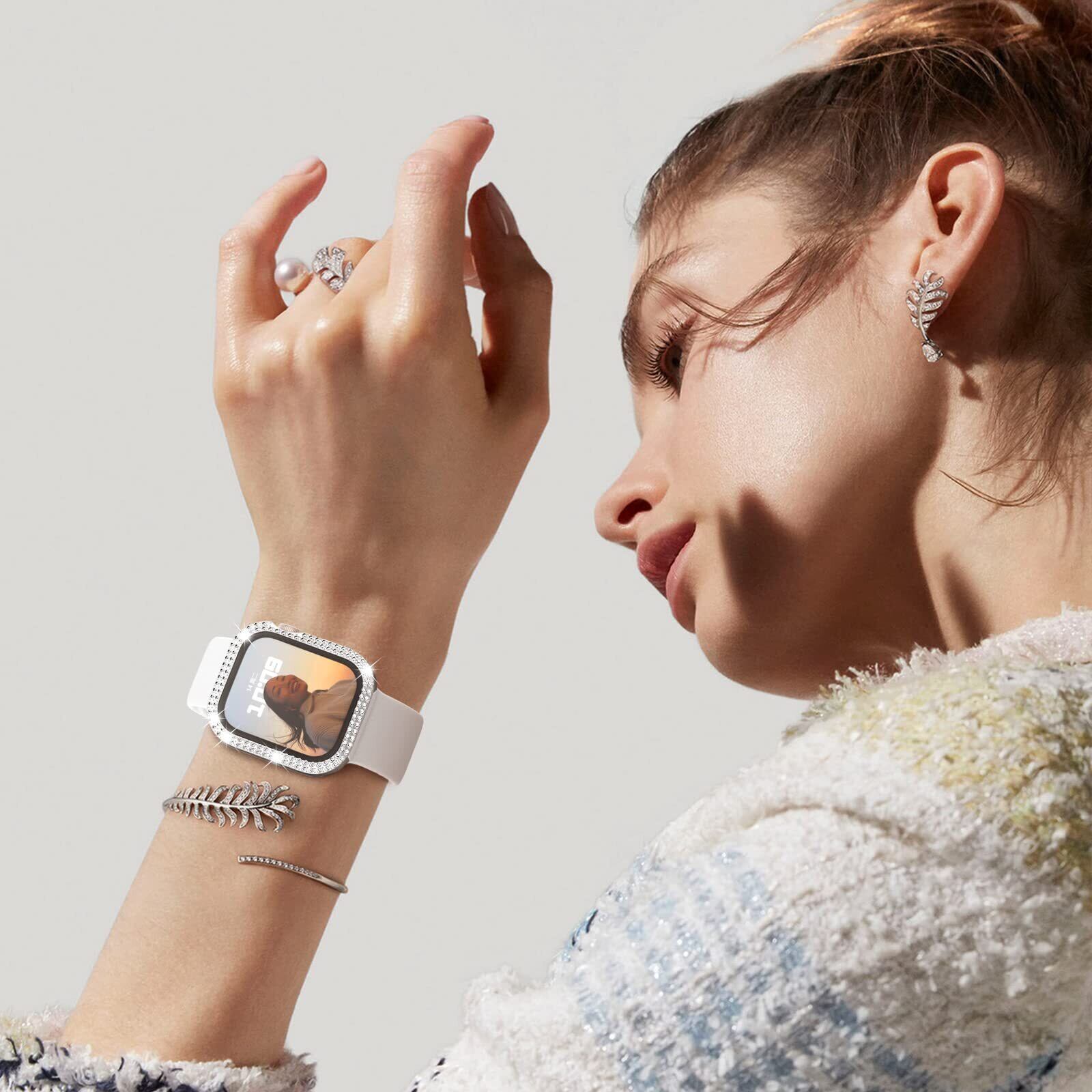 対応機種:Apple Watch Series 6/5/4/SE 40mm (アップルウォッチ シリーズ 6/5/4/SE 40mm ) に適用します。ユニークなダイヤの光と組み合わせて、いつもApple watchがキラキラ華やかに、ケースをつけたまま、Apple Watchの美しさと優雅な質感を引き立てます