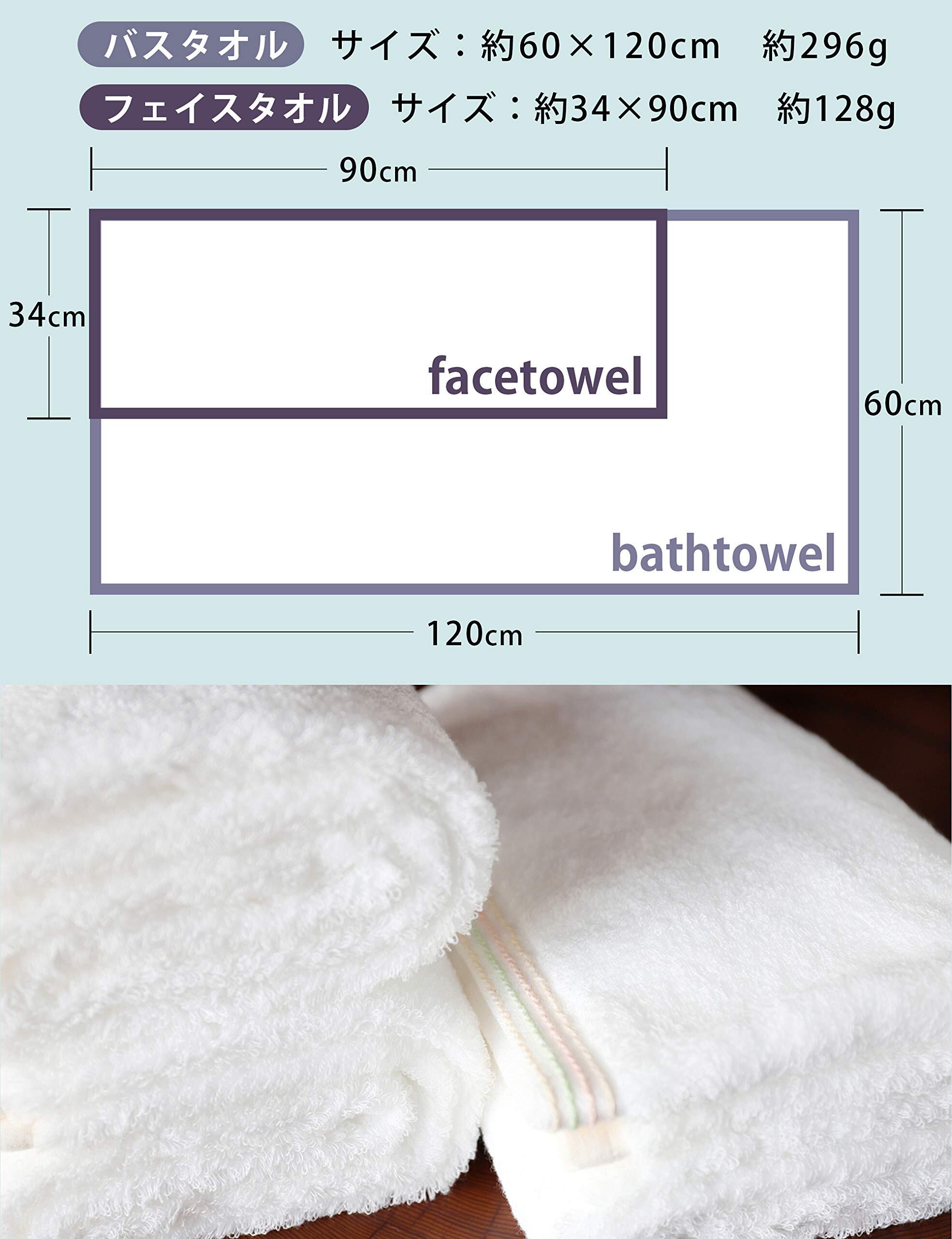 【フェイスタオル 2枚 セット】生産国:日本製(今治市) 素材:綿100% サイズ:約34×90cm 重さ:1枚あたり約128g カラー:ホワイト 化粧箱サイズ:約19×25×7cm