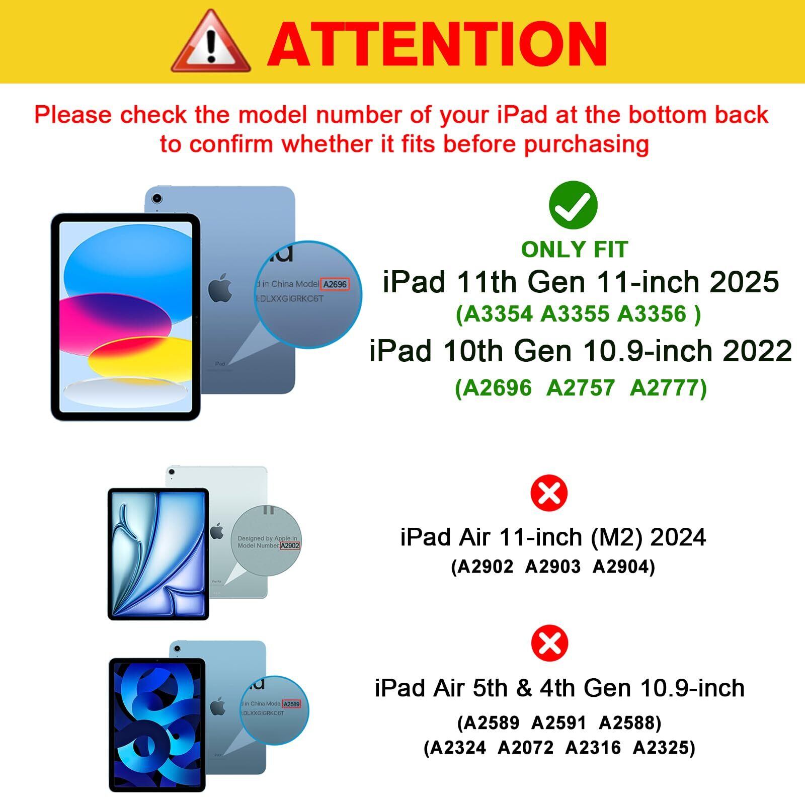 対応端末:iPad 11世代 (A16)11インチ2025 /10世代 10.9インチ 2022(モデル番号:A2696 A2757 A2777)のみ、その他のデバイスに適用されません、ご購入前にモデル番号をご確認いただきます。