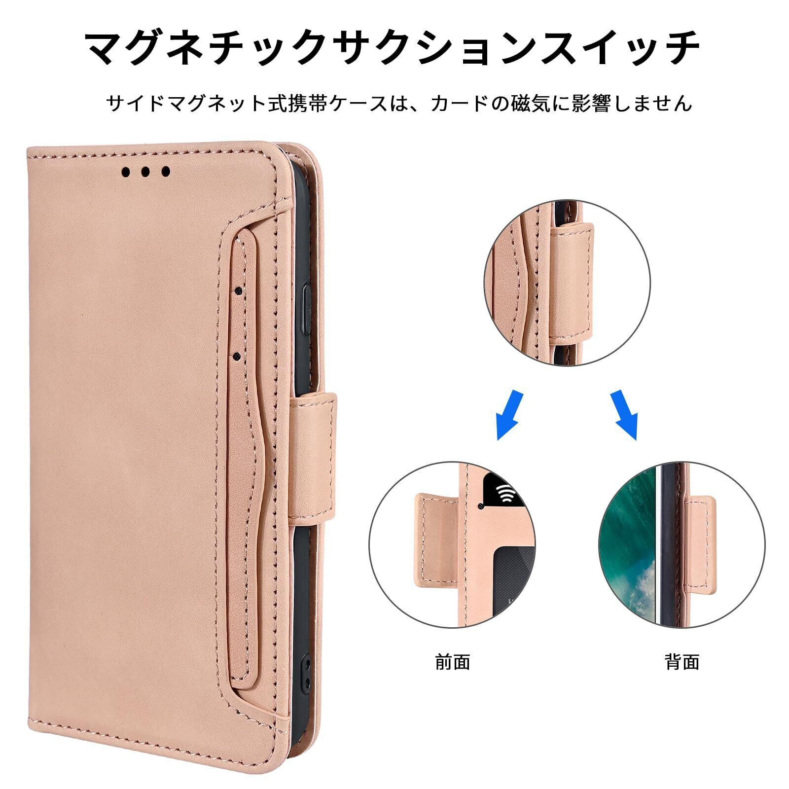 【デザインの特徴】ケース動画視聴に便利なスタンド機能が付き、横向いて斜めに立てて、お好きな角度を調整でき、両手が解放され、お気軽に読書やビデオの観賞を楽しむことができます。内側には3つのカード入れとフリーポケットがつき、名刺や定期券の収納に優れている 携帯カバーです。外側に独立したカードカバーを追加し、カードを2枚多く収納できます。普段の生活に便利をもたらします。サイドマグネット式なので、マグネットはケースの側面にあり、カード面に直接触れないので、磁気カード類の破損の心配はありません。両開きのマグネットベルトタイプなので、カードを入れても流れにくく、しっかり締め付けられます。
