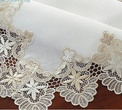 【特徴】美しいヨーロピアンレースの縁取りとタッセル付きのテーブルランナー