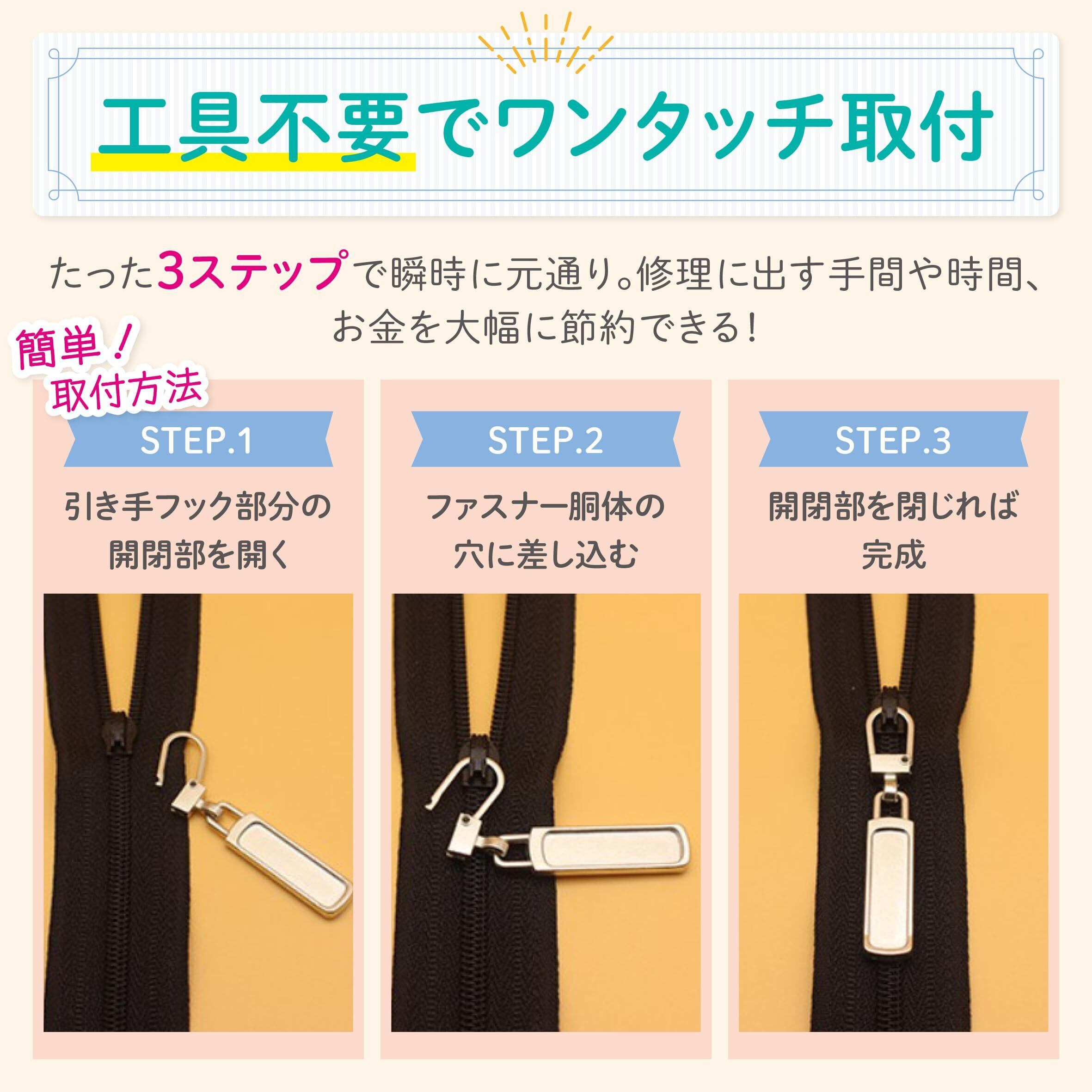 【ヨシツヤマ】 引き手の達人 ファスナー 引き手 修理 ジッパータブ チャック 2個セット 選べる18バリエーション (平型・ブラック)