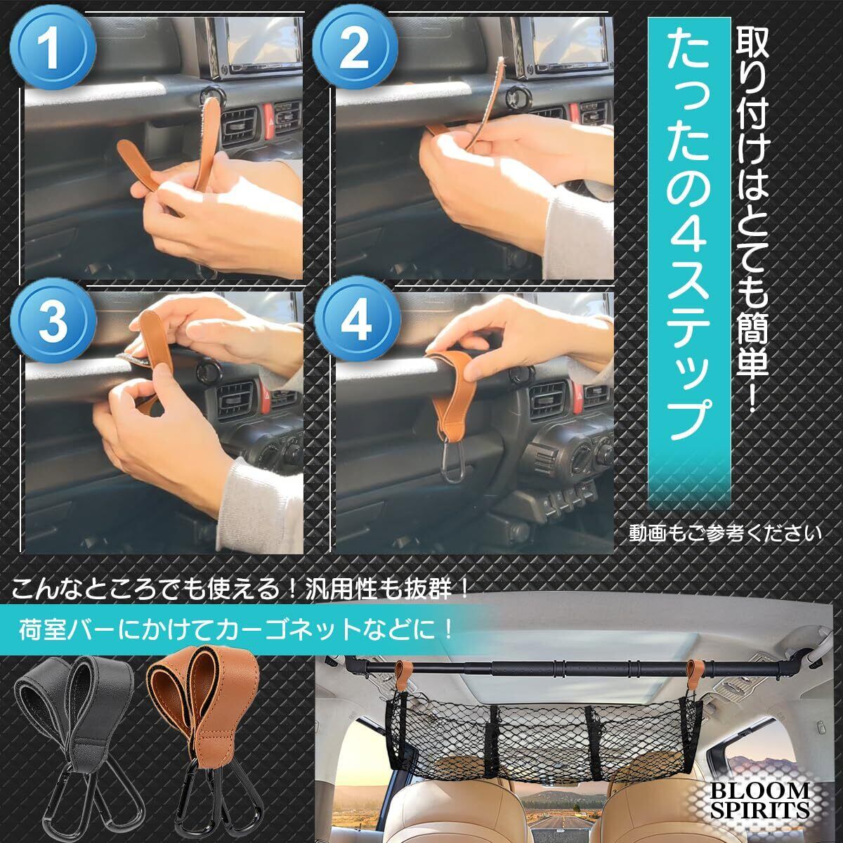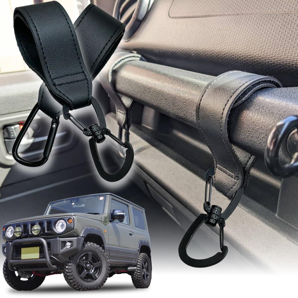 BLOOM SPIRITS ジムニー JB64 JB74 アクセサリー アシストグリップ コンビニ フック カスタム 収納 2個セット (黒 通常カラビナ+回転カラビナ)