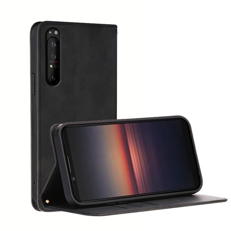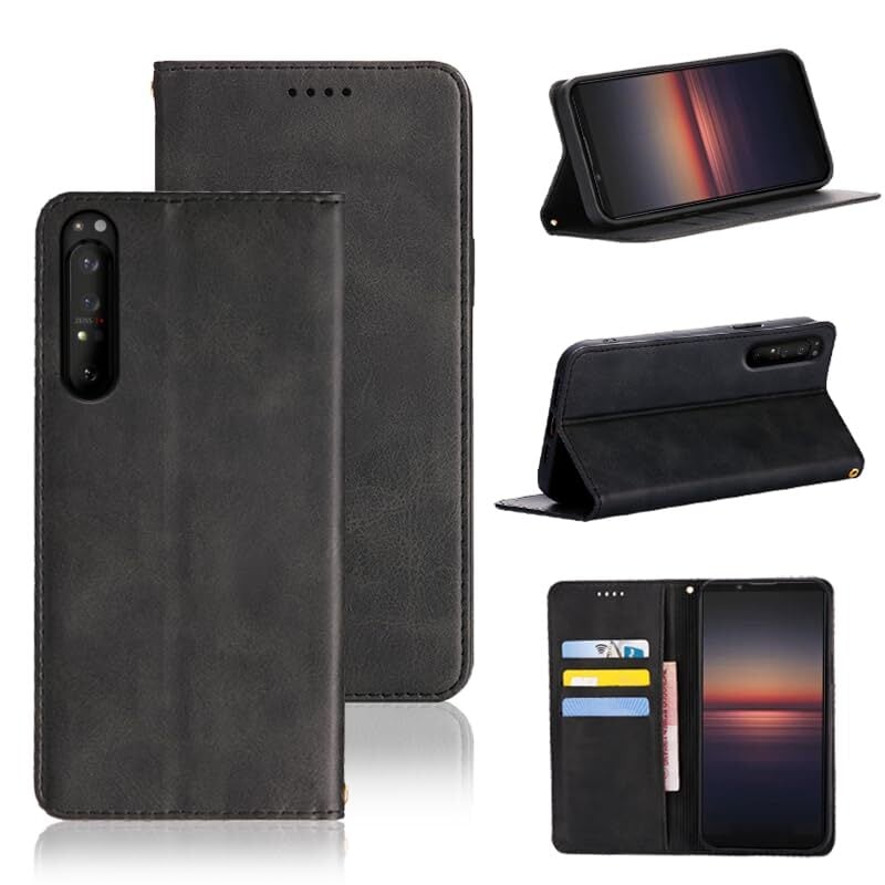 Sony Xperia 1 II ケース 手帳型 エクスペリア 1 II / SOG01/ SO-51A 手帳型 ケース カバー PUレザー カード収納 財布型 耐衝撃 ケース マグネット スタンド機能付き 5色 (Xperia 1 II / SOG01/ SO-51A ケース 手帳型) (ブラック)