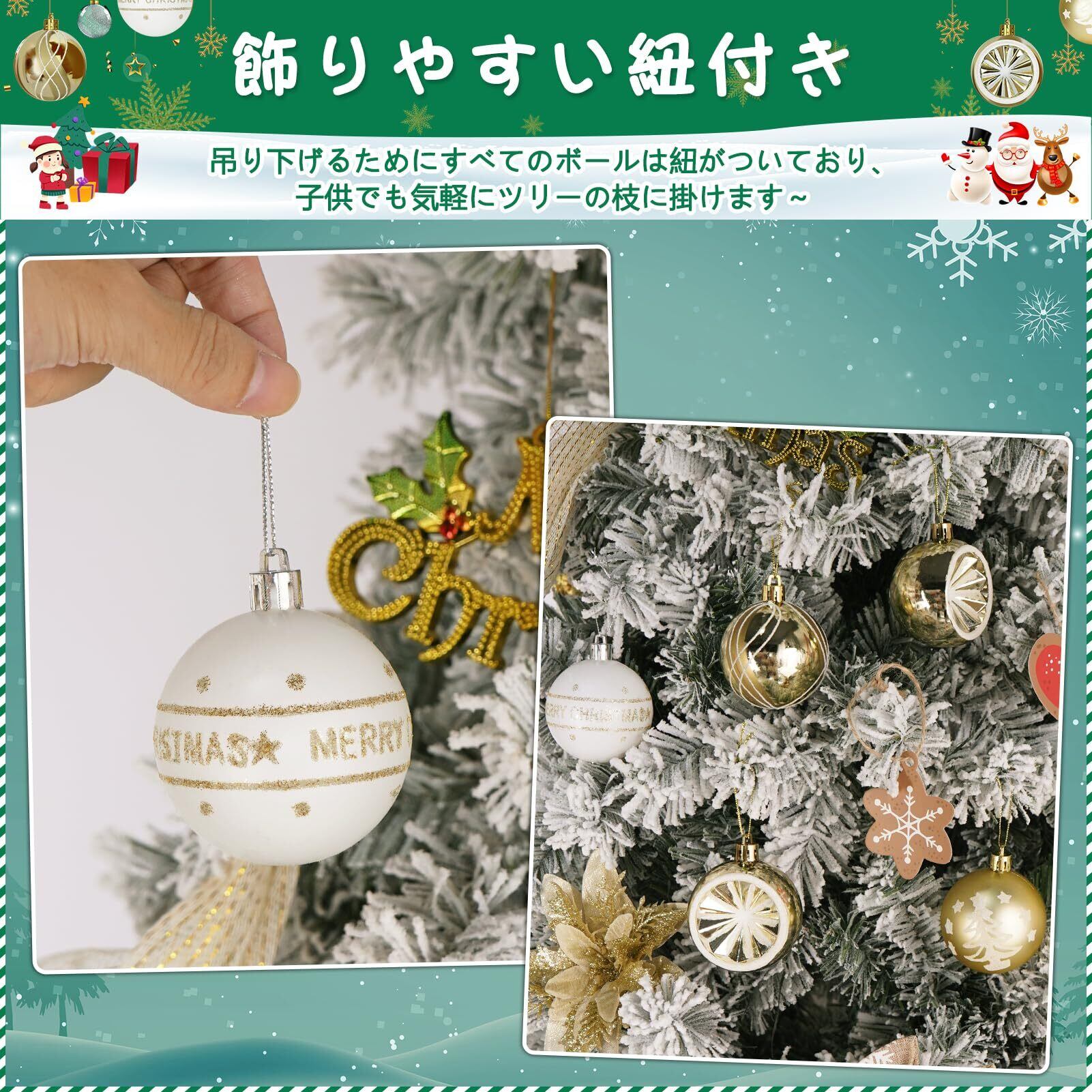 【飾りやすい紐付き】吊り下げるためにすべてのボールも紐が付き、子供でも気軽にツリーの枝に掛けます。セット内容が豊富なので、準備する過程も楽しんで頂けたら嬉しいです。部屋にもキュートと華麗になる大変身!!イルミネーションと一緒に飾ればキラキラと美しく反射して、クリスマスの雰囲気が抜群