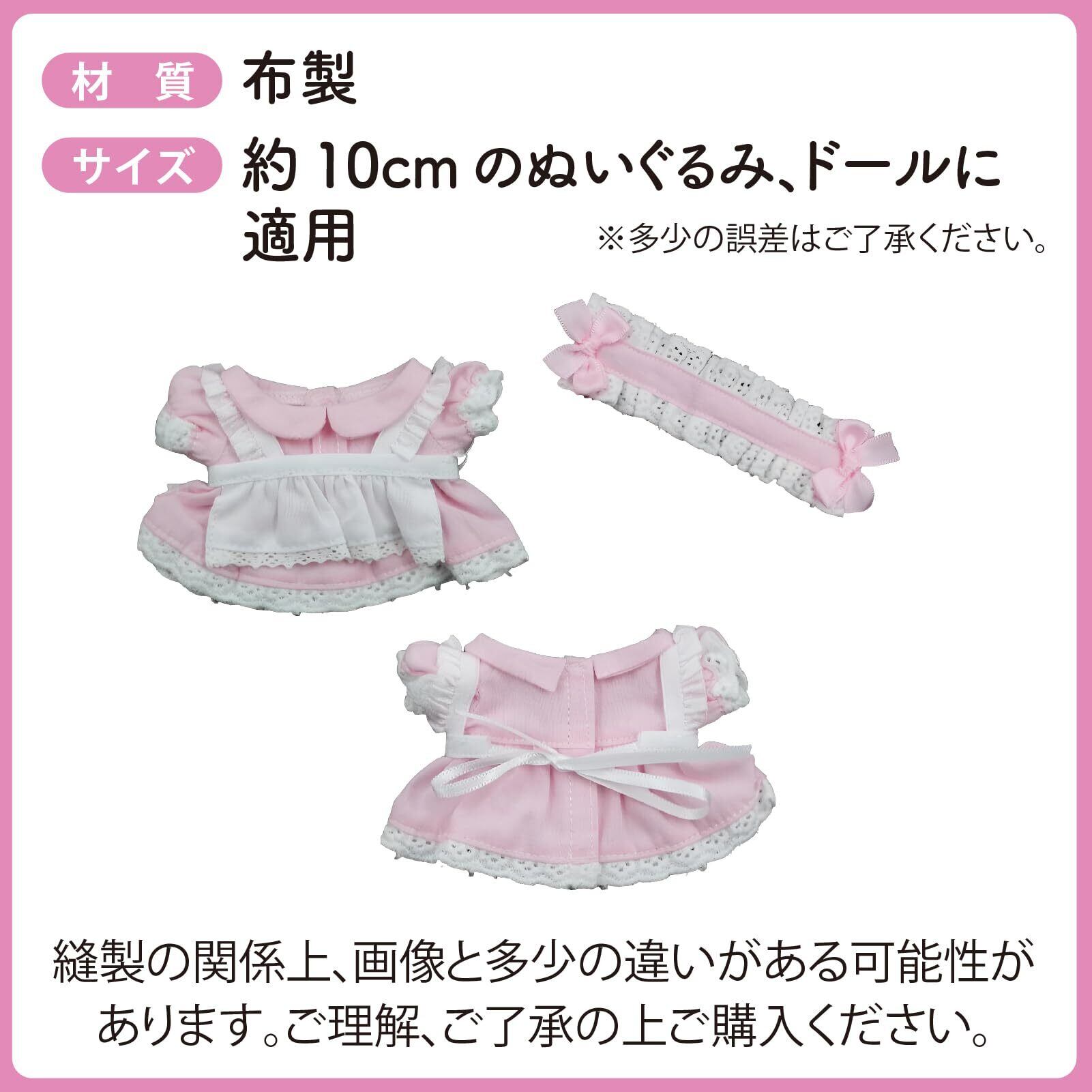ZERONOWA ぬいぐるみ服 メイド服 10cm 綿人形 着せ替え ドレス エプロン ヘッドバンド (ピンク)