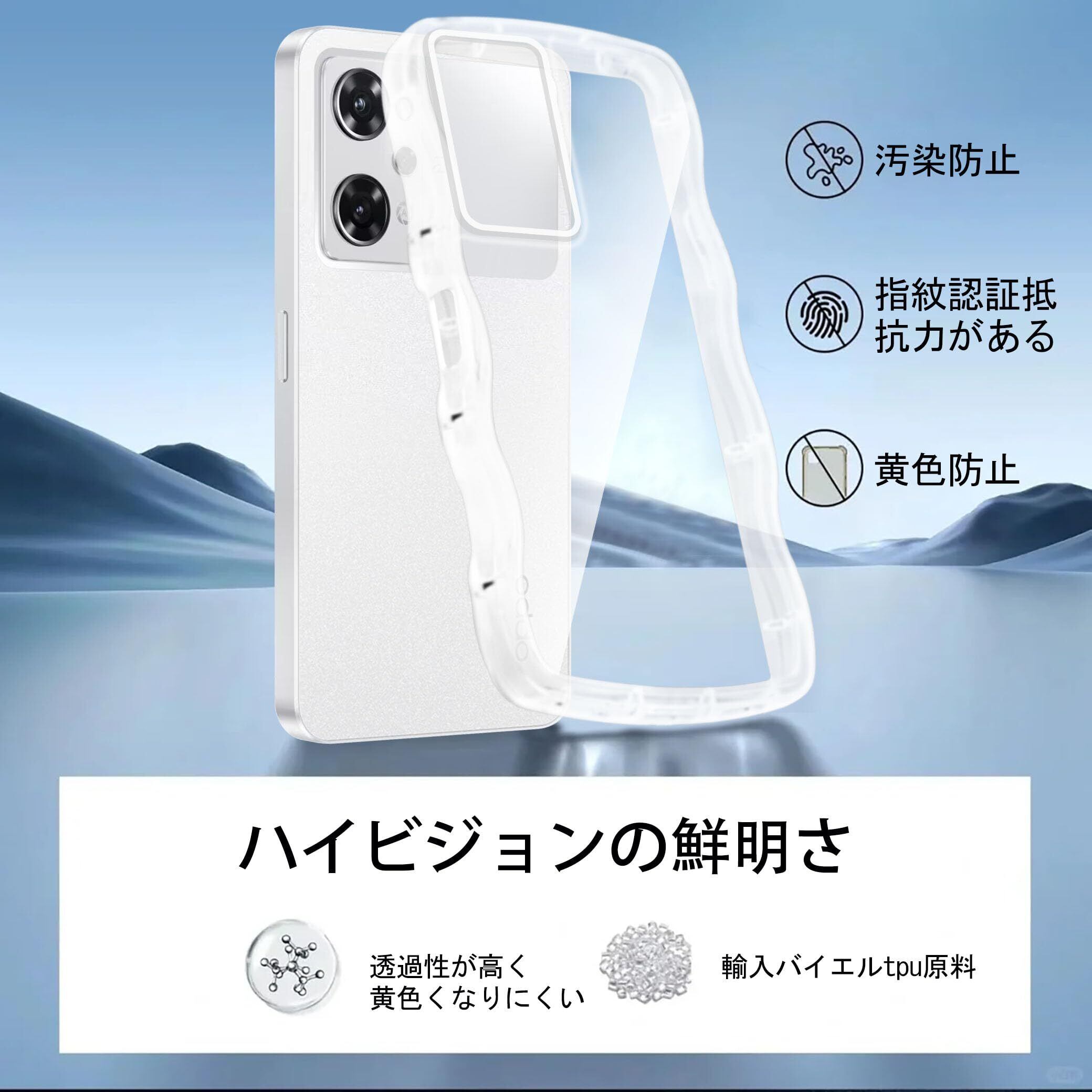 クリア OPPO Reno9 A/OPPO Reno7 A ケース かわいい 波状フレーム うねうね 耐衝撃 OPG04 スマホケース 滑り止め 人気 可愛い カバー 落下防止 ワイヤレス充電対応 (クリア 透明)