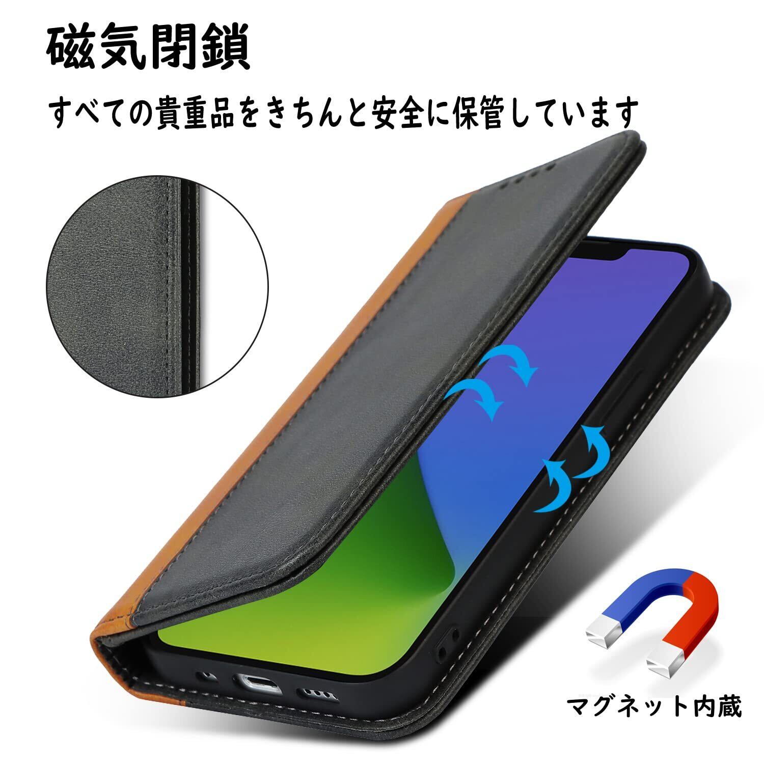 【収納機能】iPhone 14/iPhone 13ケース内側には三つのカード入れとフリーポケットがつき、カード類や紙幣、名刺などが収納できます。カードスロットに2枚のカードを入れると、内蔵マグネットの機能を最大限に発揮し、カードが消磁されるのを防ぐことができます。横置きスタンド機能が付き、横向いて斜めに立てて、自由に角度を調整して、お好みの角度で動画鑑賞や読書などを楽しめます。長時間での新幹線、飛行機の中での暇つぶしに最適です。