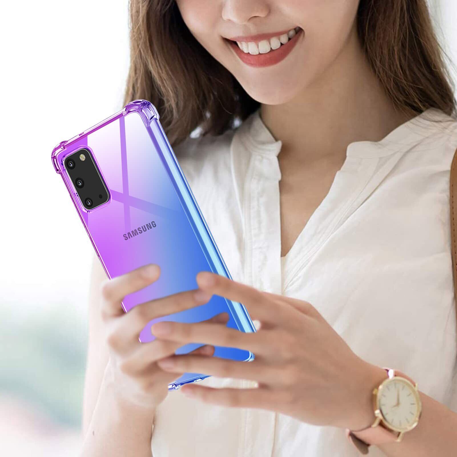 TMUJWS Galaxy S10 ケース シリコン クリア グラデーション ソフトケース 薄型 軽量 SC-03L ケース/ SCV41 ケース 耐衝撃 全面保護 tpu 四隅空気衝突防止 レンズ保護 擦り傷防止 サムスン ギャラクシー s10 ケース 人気 携帯カバー 紫+青 MZ74-32