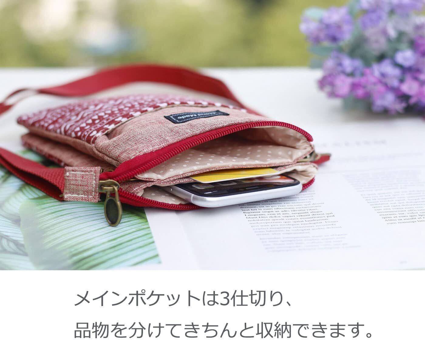 【大容量】見た目が可愛いスタイルは容量が大きくて、ポケット5つがあるので、スマホ、小銭、カードや鍵などを収納でき、十分な収納スペースがあります、お散歩や近所へお買い物、ちょっとしたお出かけに便利なミニスマホポーチです。