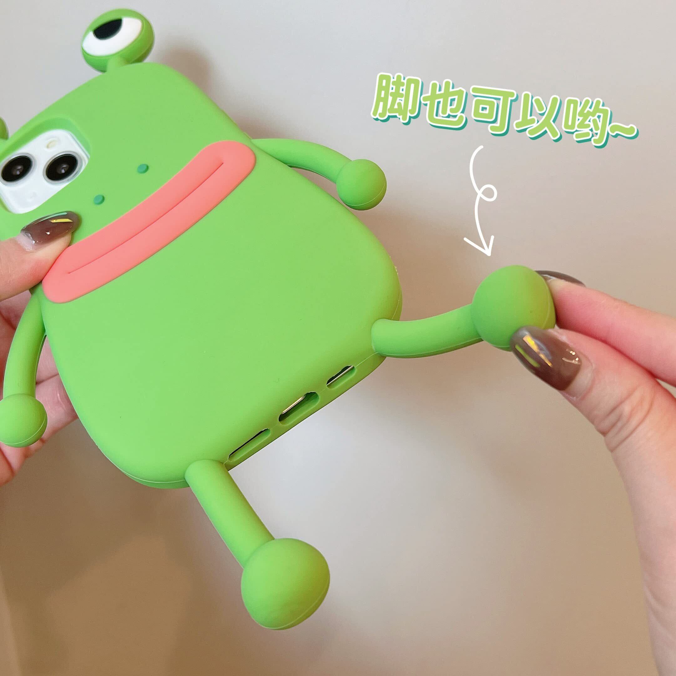 CrazyLemon 適用 iPhone 7 / 8 ケース シリコーン iPhone SE 第2/第3世代 ケース かわいい おしゃれ 可愛い グリーン カエル 面白い アニメ 動物柄 キャラクター デザイン ソフト TPU アイフォン ケース 耐衝撃 全面保護 (Silicone Case Cute Funny)