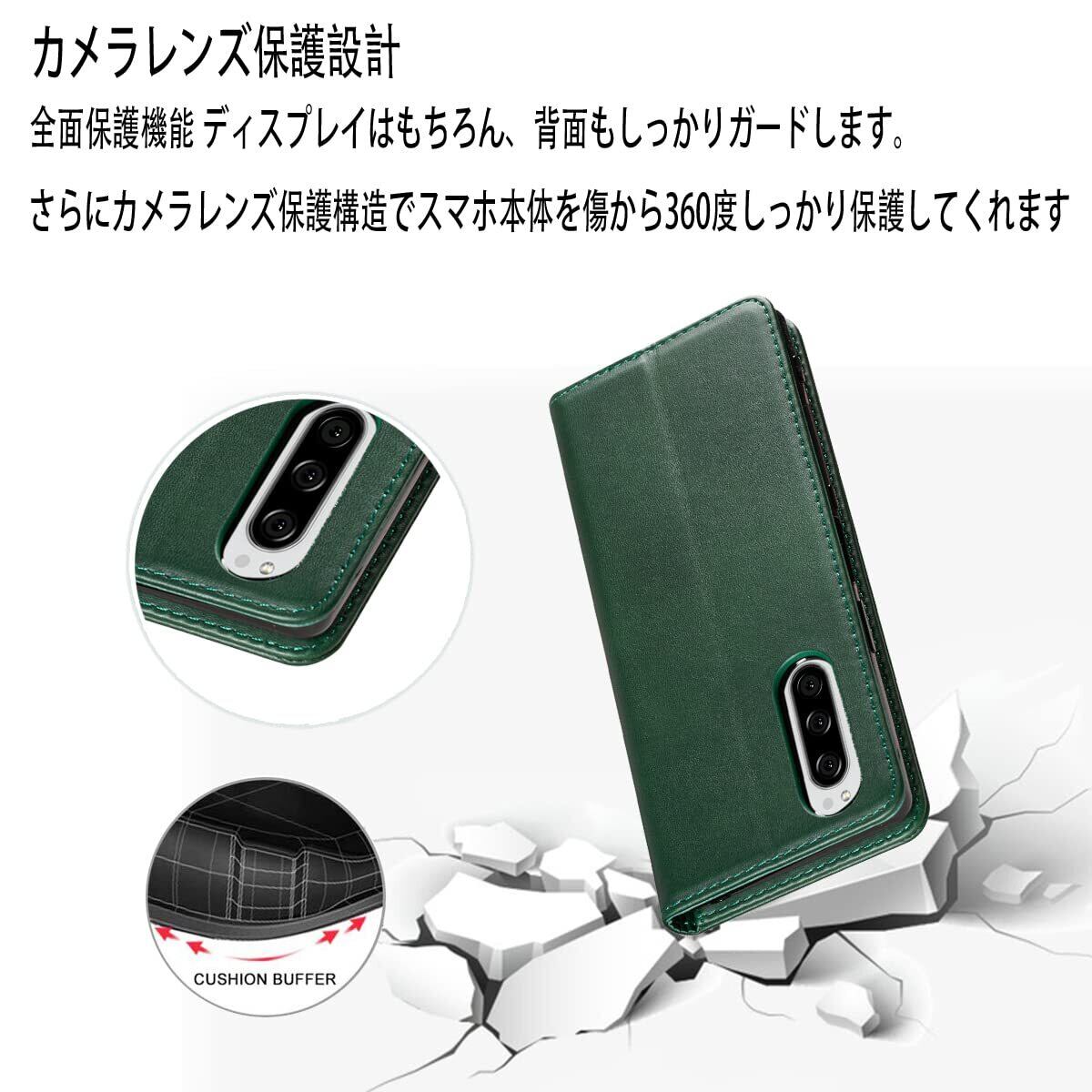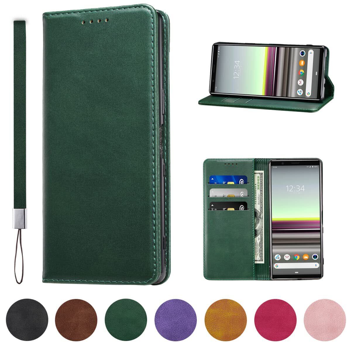 Xperia 5 ケース 手帳型 高質PUレザー Xperia 5 カバー Sony SOV41 ケース ソニー エクスペリア5 耐衝撃 SO-01M カバー Case 皮革 内蔵マグネット開閉式 ベルトなし スマホケース おしゃれ カードポケット スタンド機能 便利 スプラット同梱 携帯ケース (グリーン) | yankees