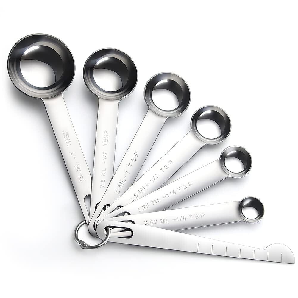 YFWOOD 計量スプーン 7点セット 小麦粉計り目盛りスプーン 大さじ小さじ 薄型ヘラ付 ステンレス鋼製調理スプーン 欧米輸出 洗濯便利の一体スプーン 家族用 調理器具 15ml | yankees