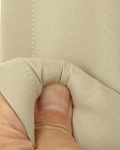 フック:アジャスターAフック(レールを見せる)つき⇒上部にレールを隠すための生地はほとんどついていません(約1cmのみ)。レールの下にぶら下がり、見せるように掛かります。
