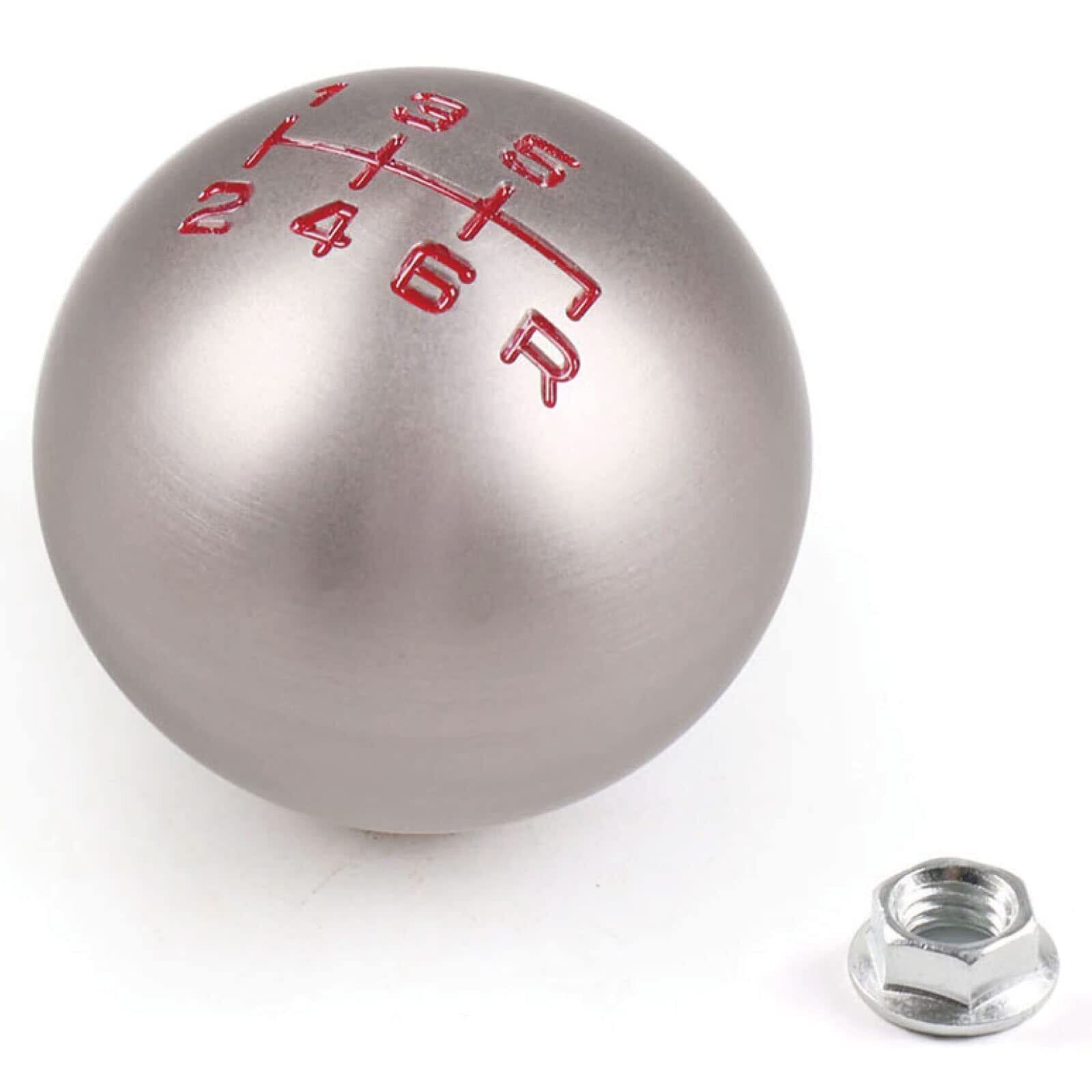 走りの予感を感じるチタンカラーの球状シフトノブ。赤いシフトパターンがスポーティーでとにかくカッコいい汎用アルミ製シフトノブです。