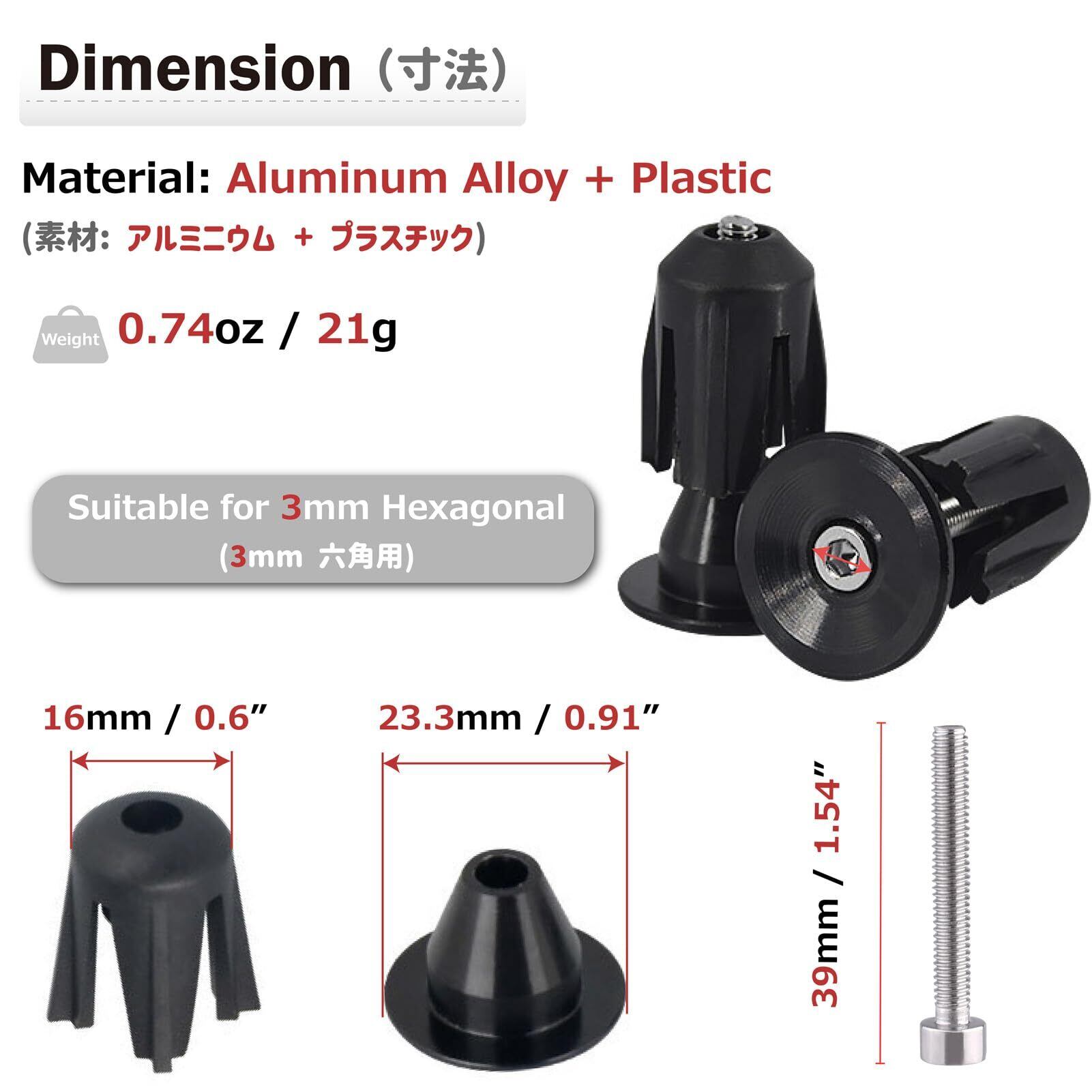 【23.3mm】- 重量約21g/2個、外径:23.3mm、内径:16mm、内径22mm - 24mm以内のハンドルバーに適しています