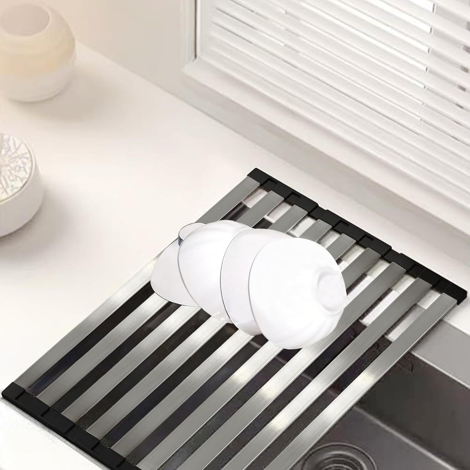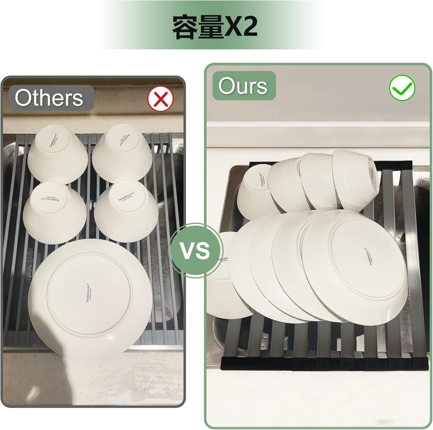 ママ倉【多機能】水切りラックシンク調理台 32~60cm選択可能 55cm 厚い 304ステンレス鋼 四角 水切りプレート 台所用 ステンレス鋼 キッチン シンク上 流し台 食器と洗い物置き 折りたたみ式
