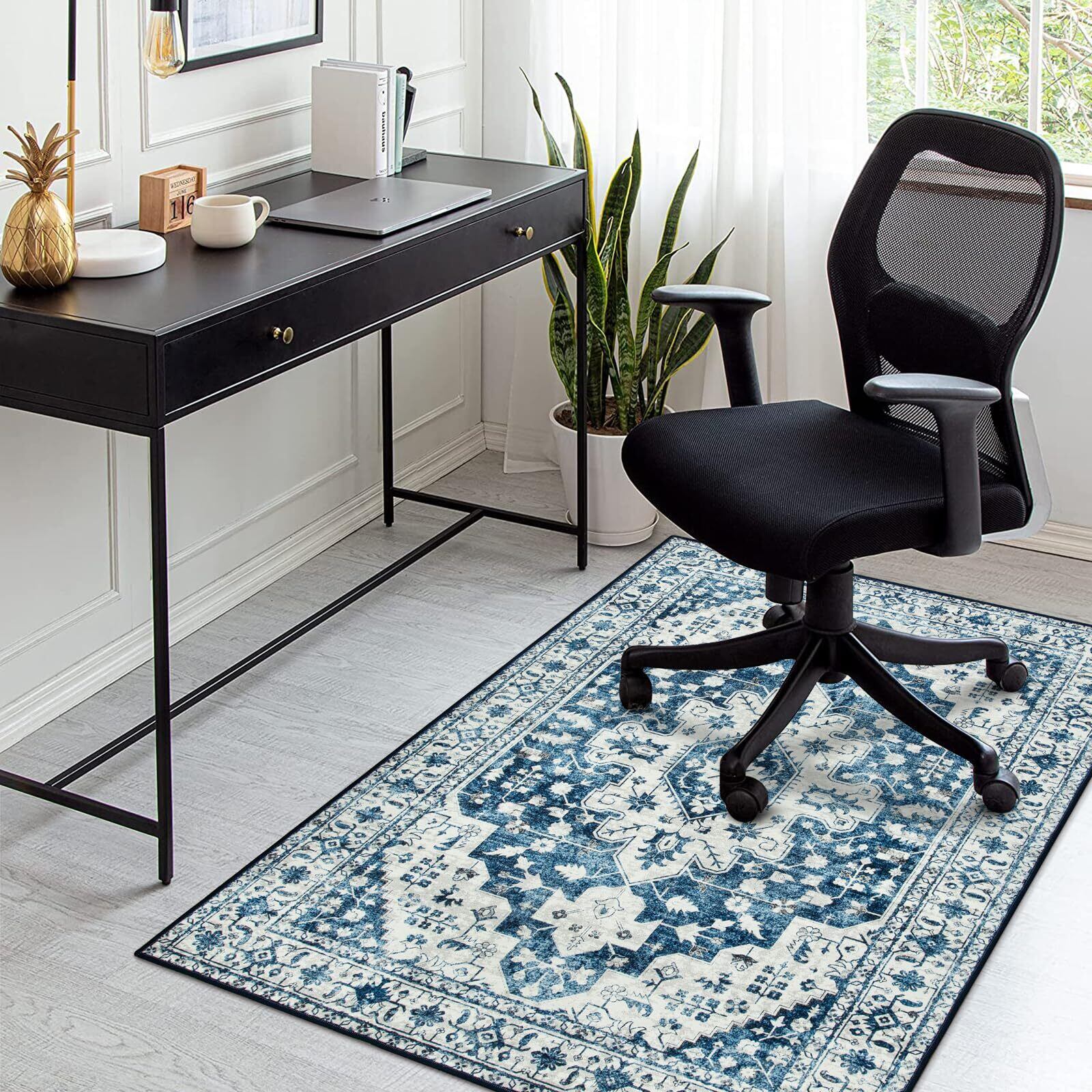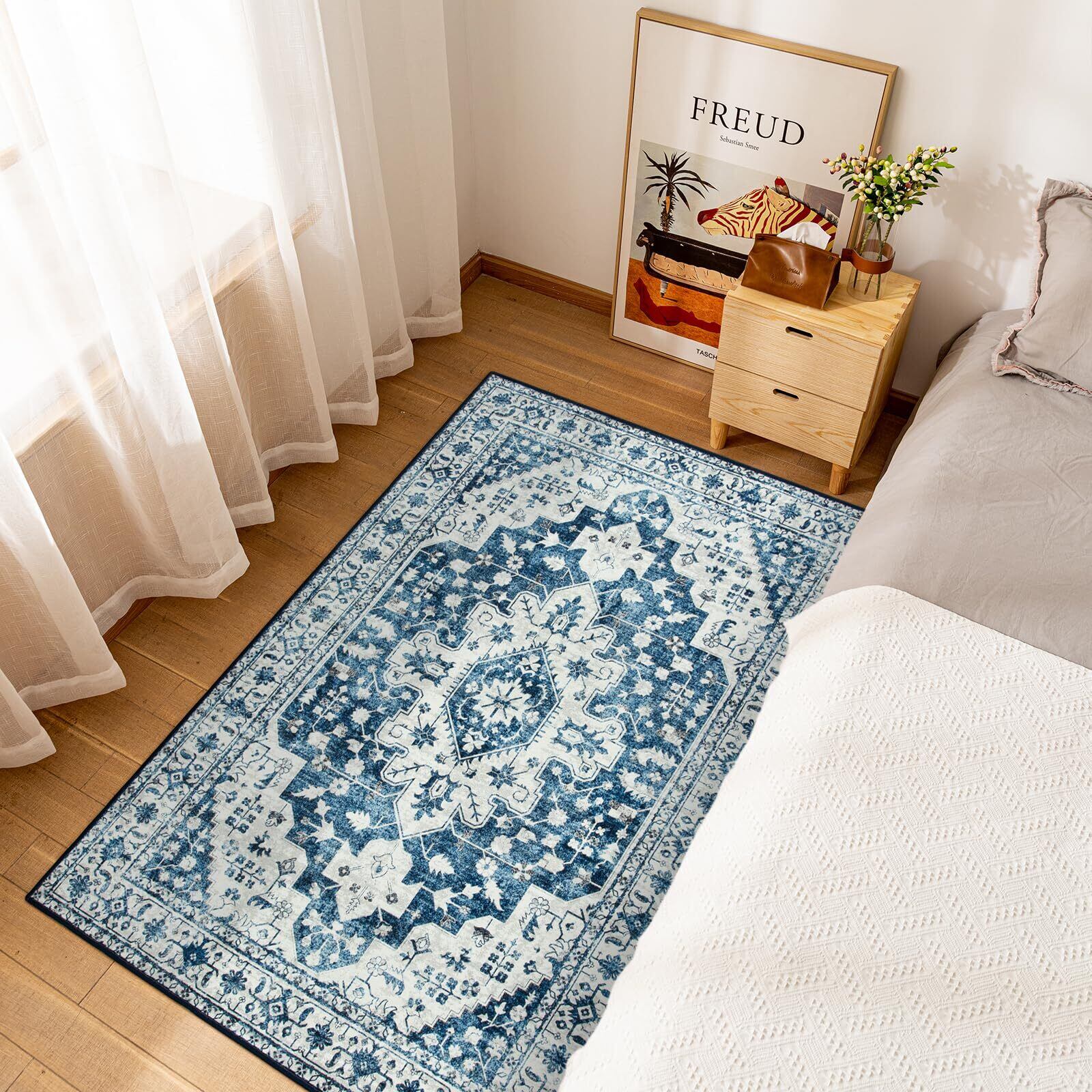 HAOCOO ラグマット 1畳 ラグ 洗える 90х150cm ペルシャ風 じゅうたん オールシーズン適用 滑り止め 防音 一人暮らし カーペット リビング 寝室 耐磨耗性 薄手 ホットカーペット対応 メダリオン柄 ブルー
