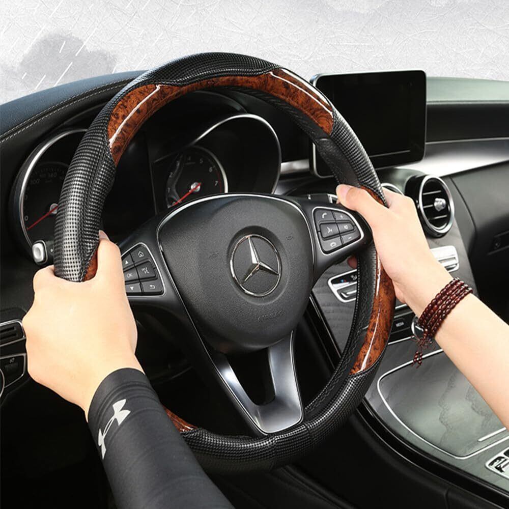 TATACLEA ハンドルカバー 木目調 軽自動車 普通車 多車種適応 車内装 O型 38cm 通気性よし 滑り止め 汗对策 四季汎用 おしゃれ 握り心地よい ステアリングカバー(ブラウン) | yankees