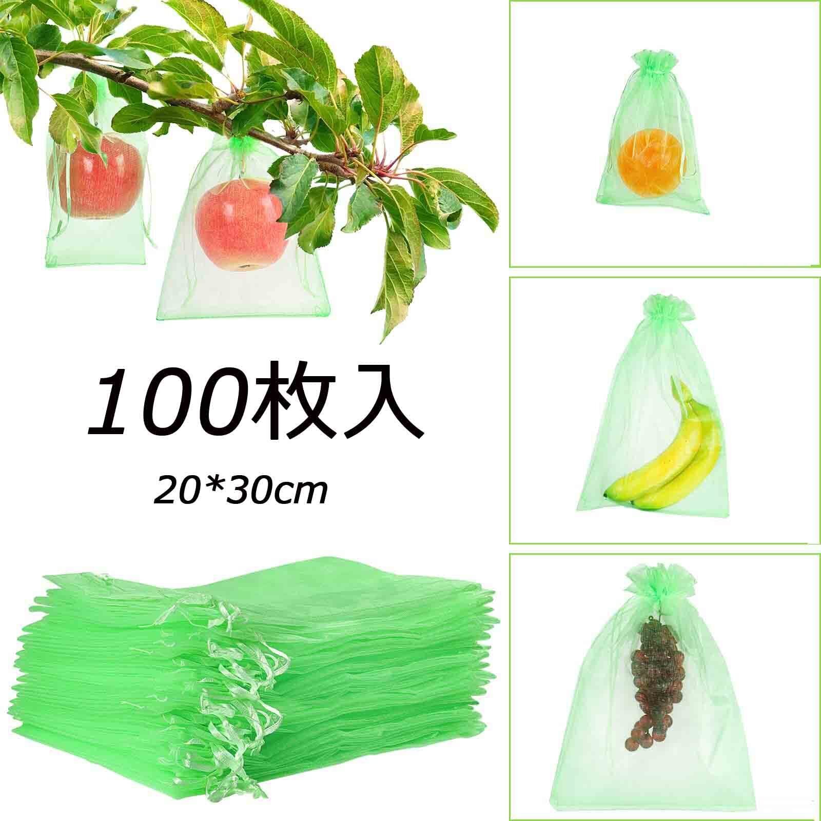 果物袋 保護ネット 防虫 ネット 100枚入 果樹用防鳥ネット オーガンジー生地 通気性 メッシュ 鳥よけネット 鳩よけネット 果物保護バッグ 果実袋 イチゴ 鳥よけ 虫よけ カラス対策 害虫鳥避け 桃 イチゴ ミニメロン いちじく ブドウ用 園芸工具 農業用 野菜保護 収穫 栽培用 巾着袋 20*30cm グリーン | yankees