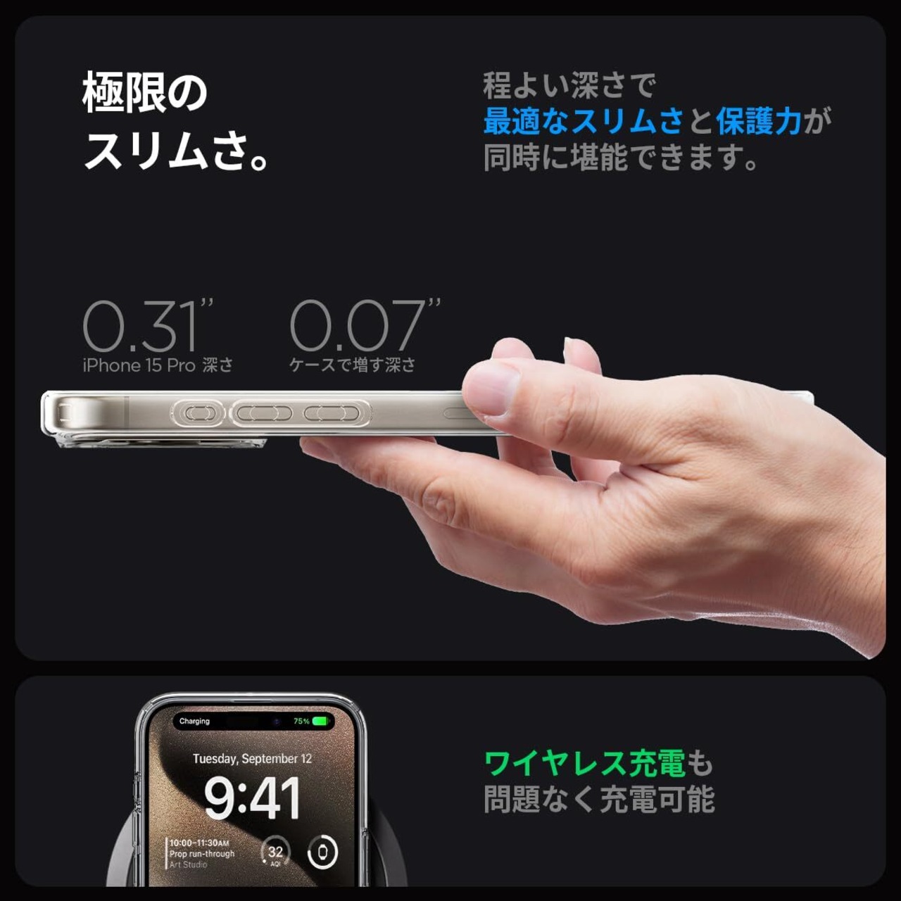 Spigen 【創業18年の技術力】 iPhone 15 Pro ケース MagSafe クリア 耐衝撃 米軍MIL規格取得 ストラップホール 黄変抑制 透明 ストラップホール マグネット搭載 2重構造 レンズ保護 擦り傷防止 MagSafe ワイヤレス充電対応 ウルトラ・ハイブリッド マグフィット ACS06715 (ホワイト)