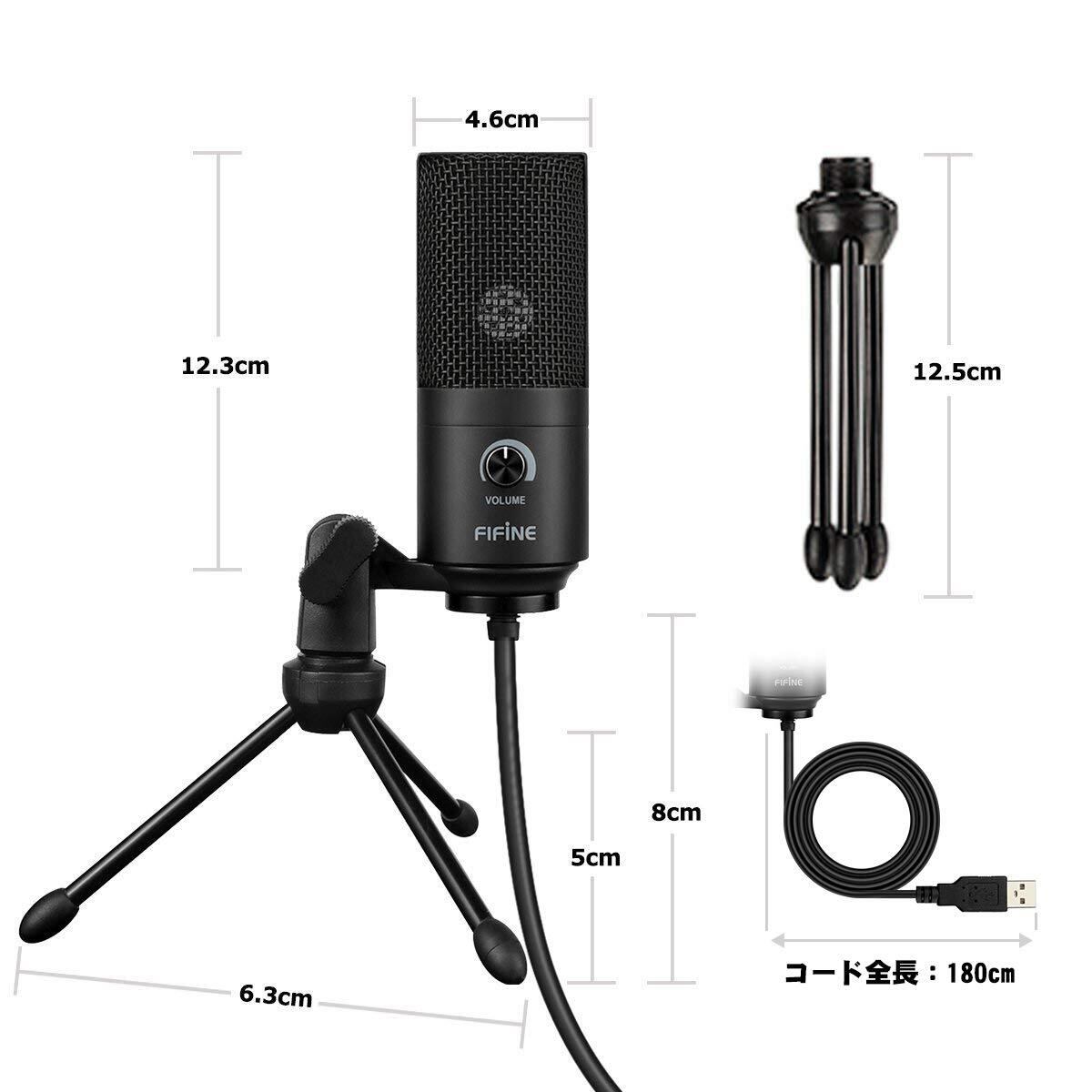 FIFINE USBマイク コンデンサーマイク PC用マイク ネット通話 ゲーム配信 在宅勤務 ボイズチャット 単一指向性 音量調節可能 三脚マイクスタンド付属 パソコンのWindows/Mac対応 ブラック K669B