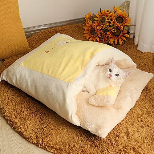 RUUVIJP キャットハウス 猫用ベッド 猫用寝袋 枕付き 和風 ペットベッド布団型 ペットマット 猫 グッズ 冬用 裏起毛 寒さ対策 保温防寒 クッション ふわふわ 暖かい 小型犬 犬猫用