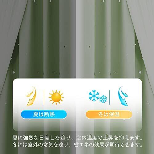 カーテン 姫系 遮光 レースカーテン付き 2枚組 丈180cm×幅100cm 一体型カーテン 二重 星柄 おしゃれ 厚手 フック付き タッセル付き 取付簡単 すぐ使える アジャスター付き 遮熱 保温 小窓/出窓用 掃き出し窓 腰窓 子供部屋 女の子 幼稚園 洗濯可能 グリーン【両開き】JOLLYVOGUE | yankees