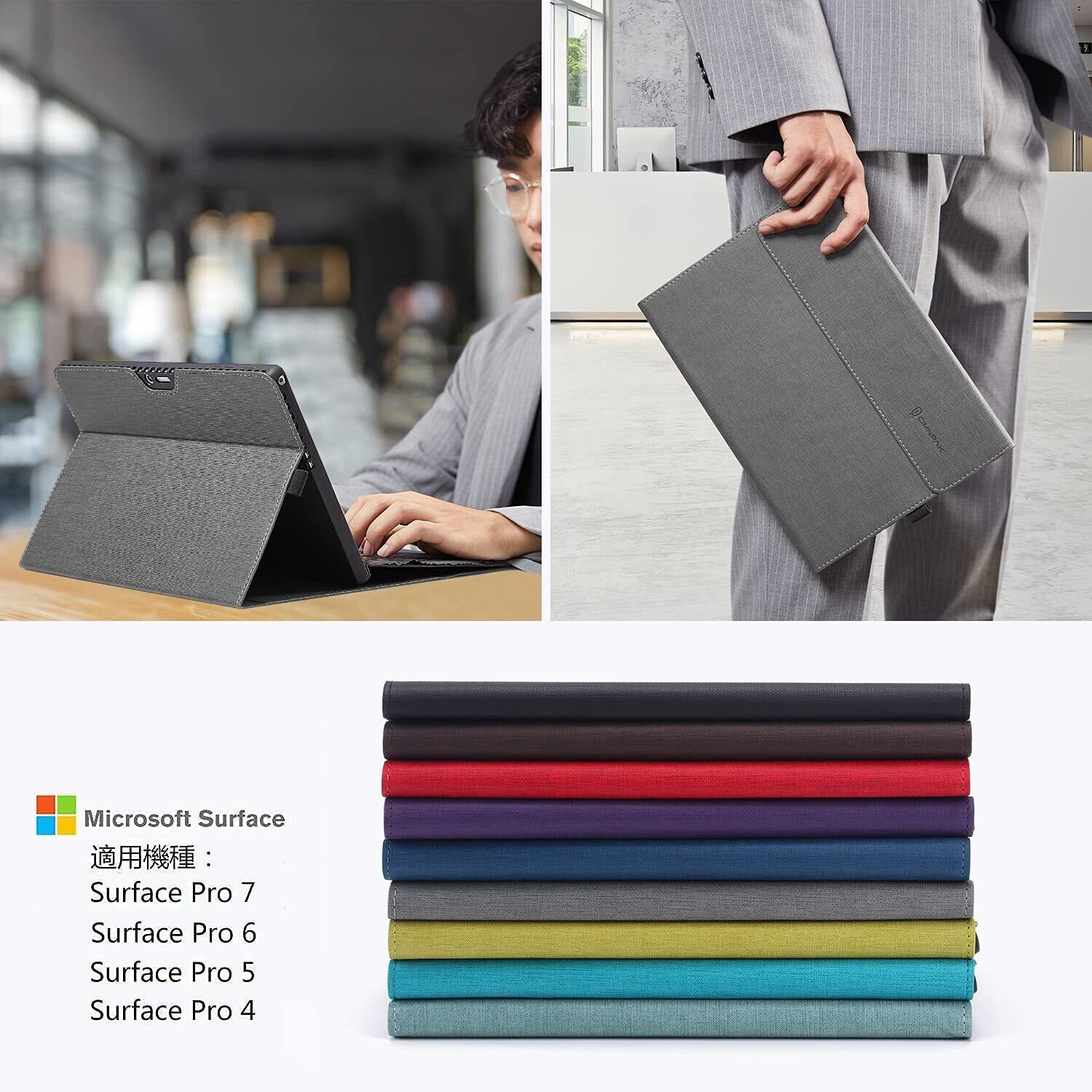 Omnpak Microsoft Surface Pro 7+/ 7/ 6 / 5 / 4 対応 ケース 表面内蔵保護カバー |多視角スタンド |超薄型 |ペンホルダー付き|高耐久PU |吸着カバー
