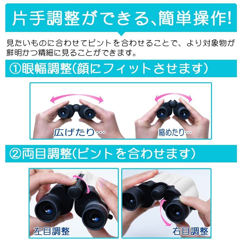 仕様 倍率 : 10倍 対物レンズ有効径 : 22mm 実視界 : 7.5 Degree 1000m先の視界 : 112m 重量 : 150g 付属品 : 専用ケース 用途 : 旅行/スポーツ観戦/ハイキング/自然観察 特徴 : 片手操作、軽量、コンパクト【特徴】 よく見える10倍: 折り畳み式で、10倍の高倍率/高性能双眼鏡は、クリアな視界で高い解像度を実現します。 驚きの軽: 軽くてコンパクト、手のひらサイズで使いやすいので、女性やお子様、ご年配の方にも気軽に持ち運びいただけます。 非常に頑丈で持ちやすく: 小型軽量タイプですので、アウトドアだけではなく普段持ちで気軽に持ち出したい場合や、旅行への携帯にも最適です。良好な手触りを提供するアンチスリップデザインで、使用中は落ちにくいです。