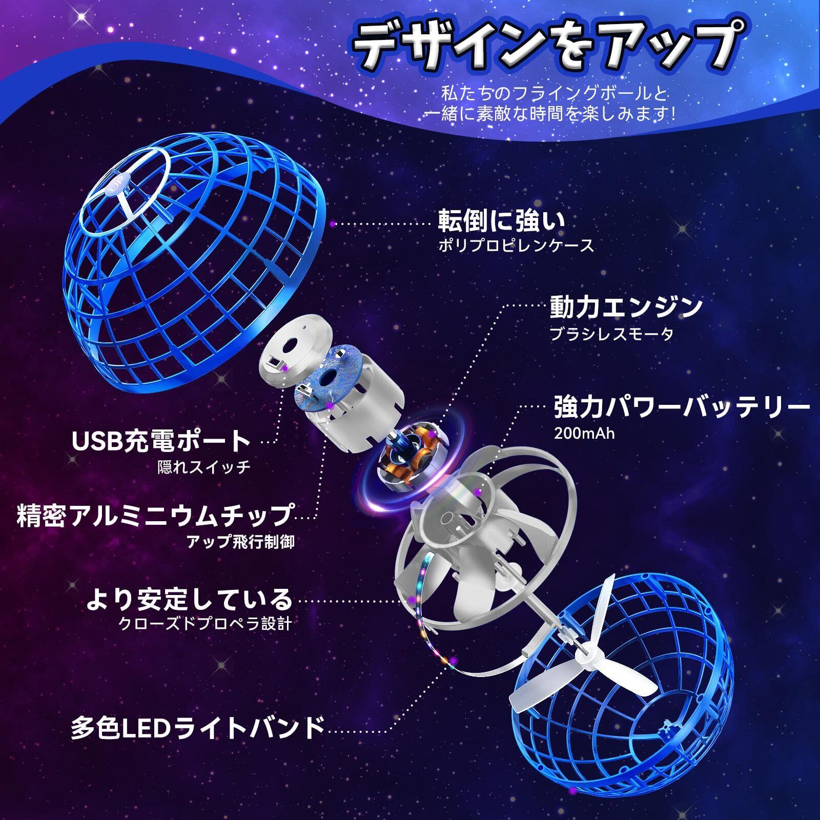 Tikduckフライングボール ジャイロ飛行ライトボール おもちゃ ホバリング ブーメランスピナー RGBライト付き360°回転USB充電式 屋外/屋内 子供 大人向けミニドローン 人気 誕生日 プレゼント (青)