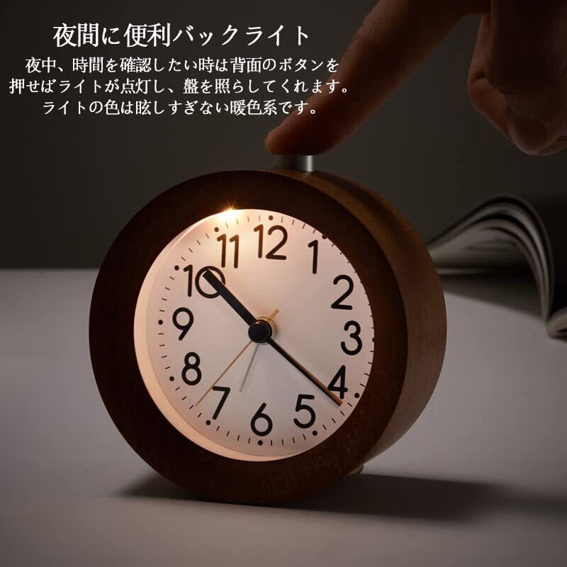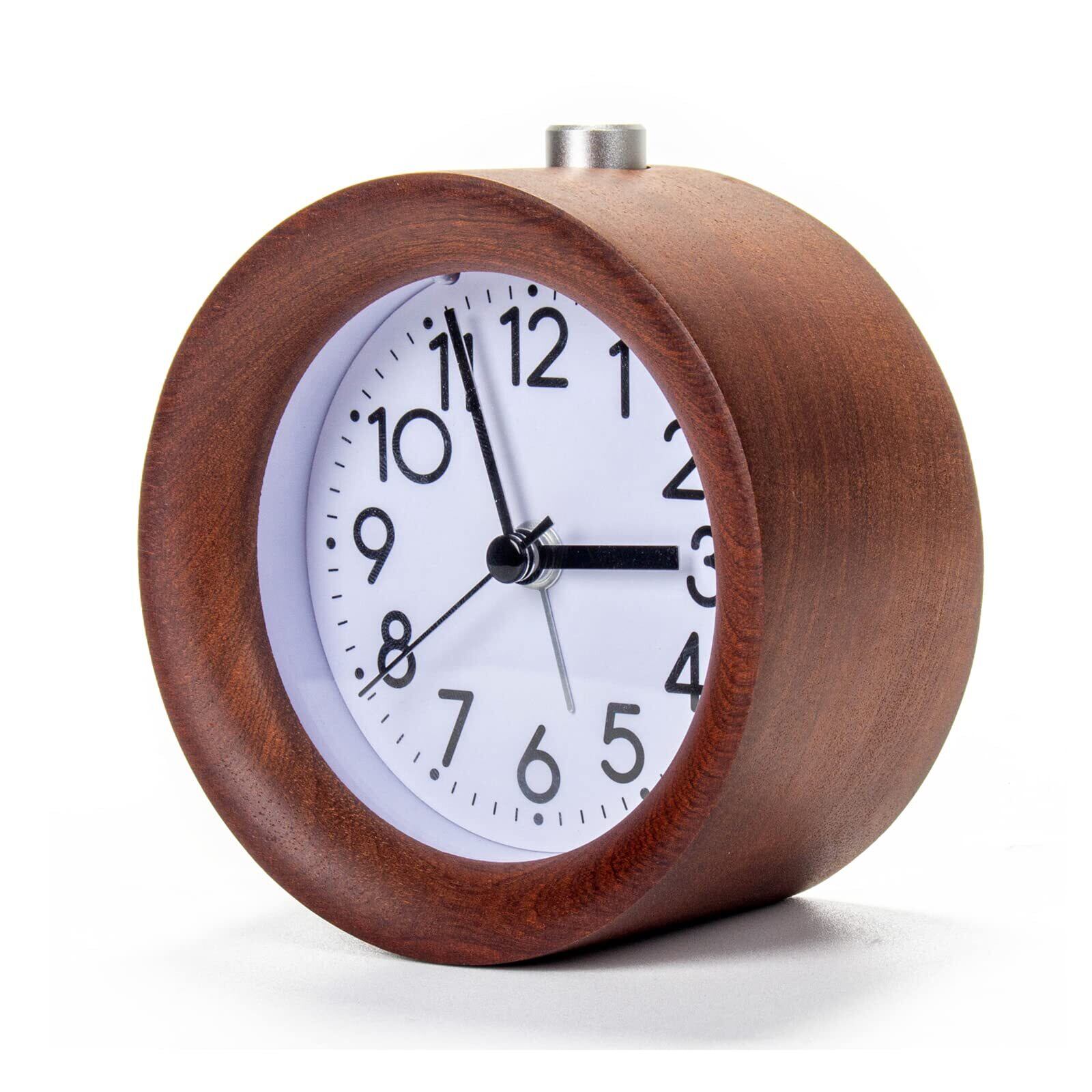 OneLeaf 目覚まし時計 置き時計 ナチュラル 卓上時計 静音 連続秒針 アラーム時計 スヌーズ機能 アラーム 照明ライト付き 木製 電池式 小型 かわいい (ブラウン)