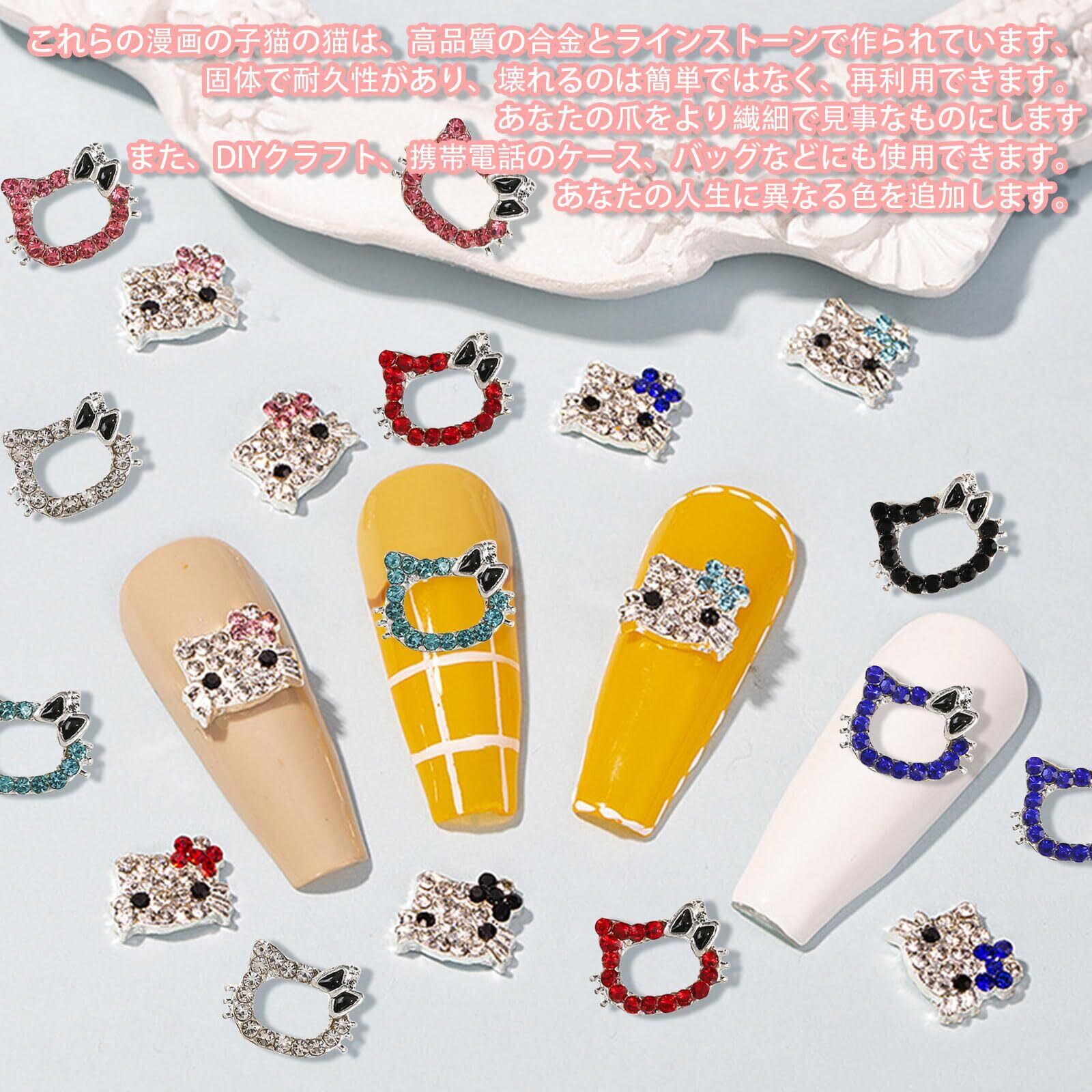 【ネイルパーツ セット】キュートでオシャレなキティネイルパーツ。家庭用とプロのネイルサロンに適していて、ファッショントレンドの女性のネイルデザインにぴったりです。